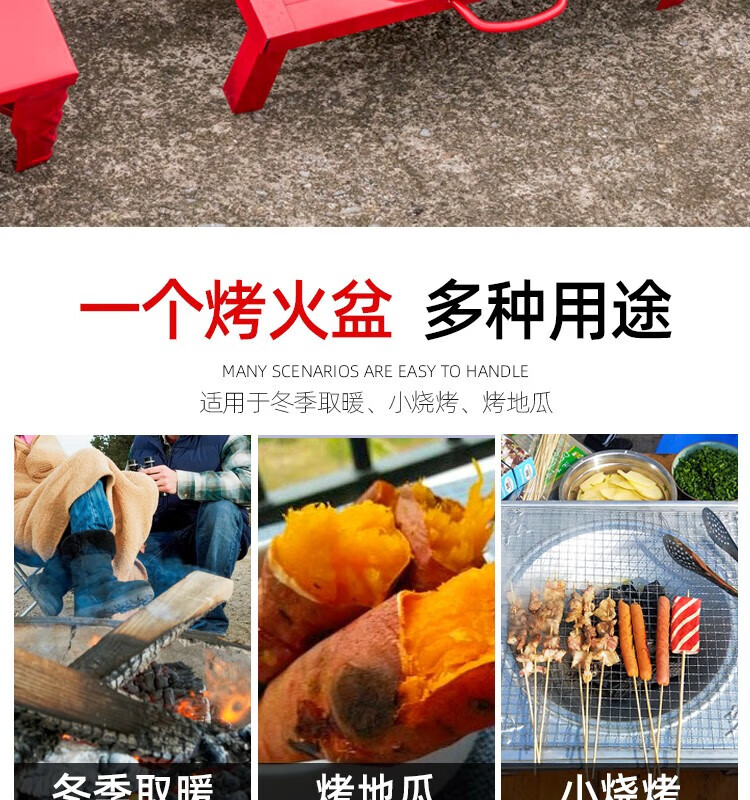 烤火盆 木炭火盆烤肉火盆架子家用便 4脚活动脚火盆+螺丝刀[非主图