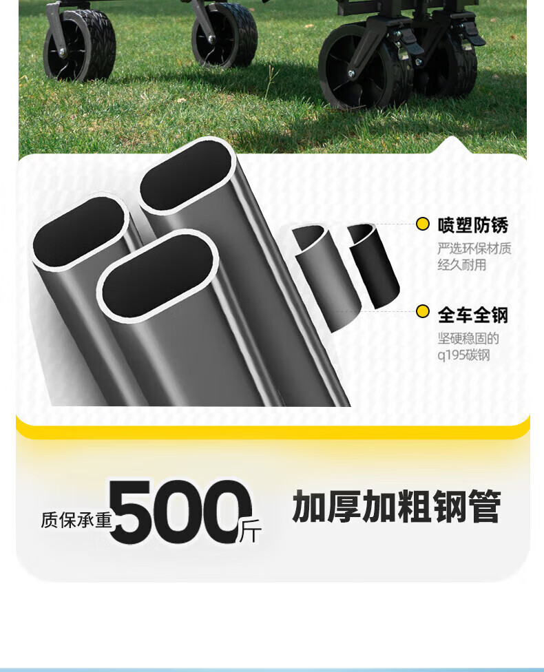 京物露营车推车户外聚拢型营地车野营可折叠小拖车便携式野餐手拉车桌 500L 有刹车 全钢车架+桌(白色)