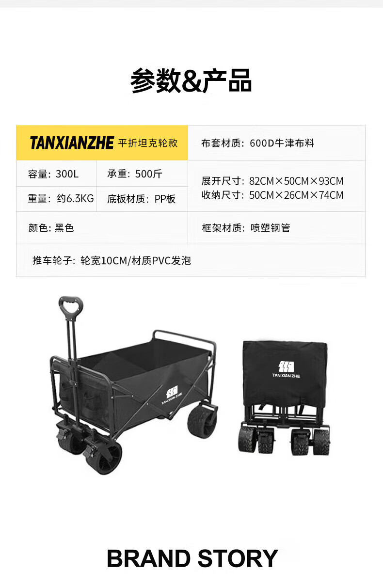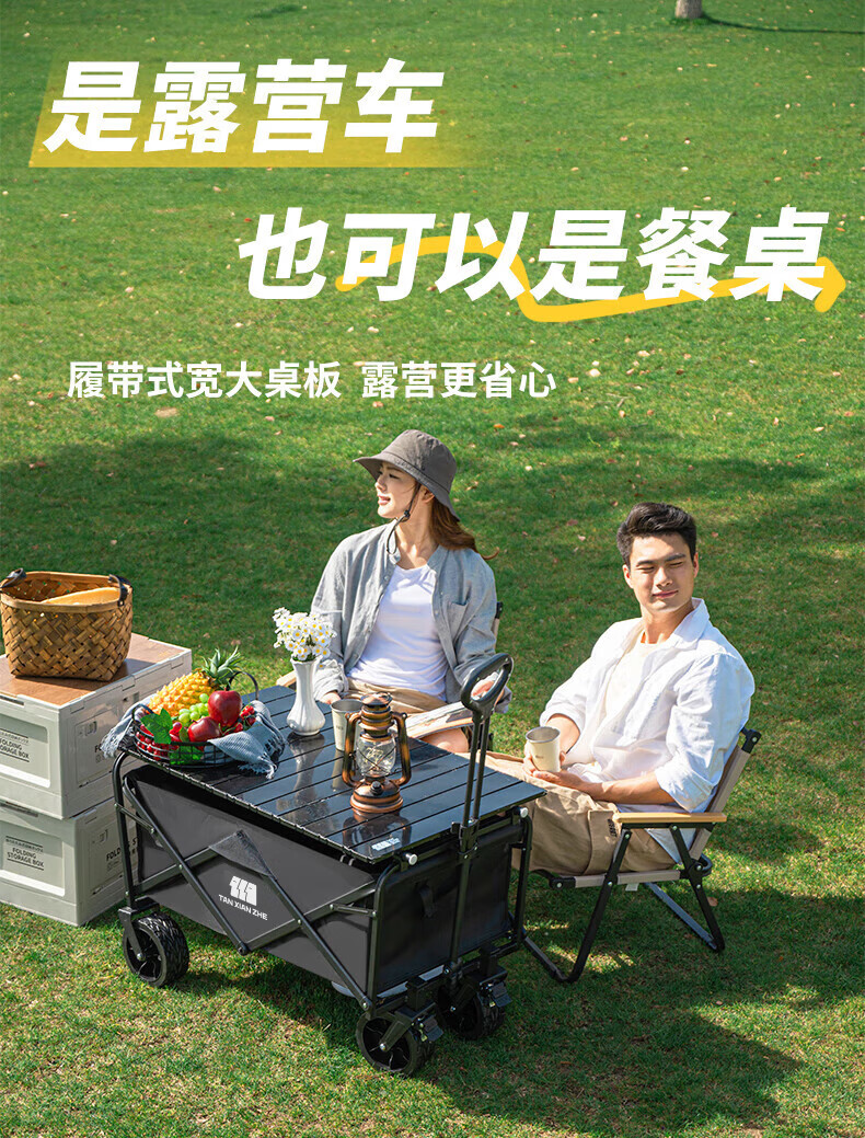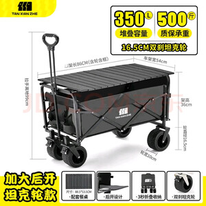 探险者(TAN XIAN ZHE)露营车坦克轮带桌板露营车户外折叠特大号快递车小拖车野餐拉车 150L 淡栗棕实心静音轮+桌板