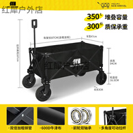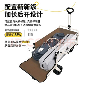 原始人露营推车可折叠户外手推野餐车营地拖车拉杆小拉车桌板野营车 160L 飞机款曜黑【越野轮+刹车】