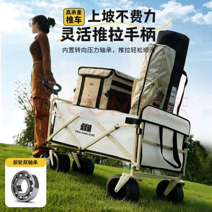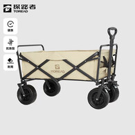 探路者(TOREAD)户外露营营地车买菜野餐轻便便携手拉四轮钓鱼出行折叠车 卡其色 加粗车轮适用沙滩 带刹车