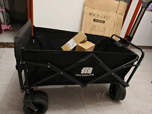 收到马上打开试一下,车车容量足够大,可以装上露营装备、食品、日用品等东西,大力推荐!并且收纳方便,轮子推拉非常顺畅;