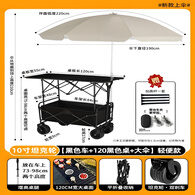 摆摊小推车露营车户外遮阳伞营地升降桌便捷夜市出摊手拉烤肠购物 10寸坦克轮【黑色车+120黑色桌子+大伞】轻便款