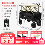 清系露营车野营车聚拢型折叠推车营地车露营推车户外手推车摆摊推车 150L 黒郁金高桌板套餐