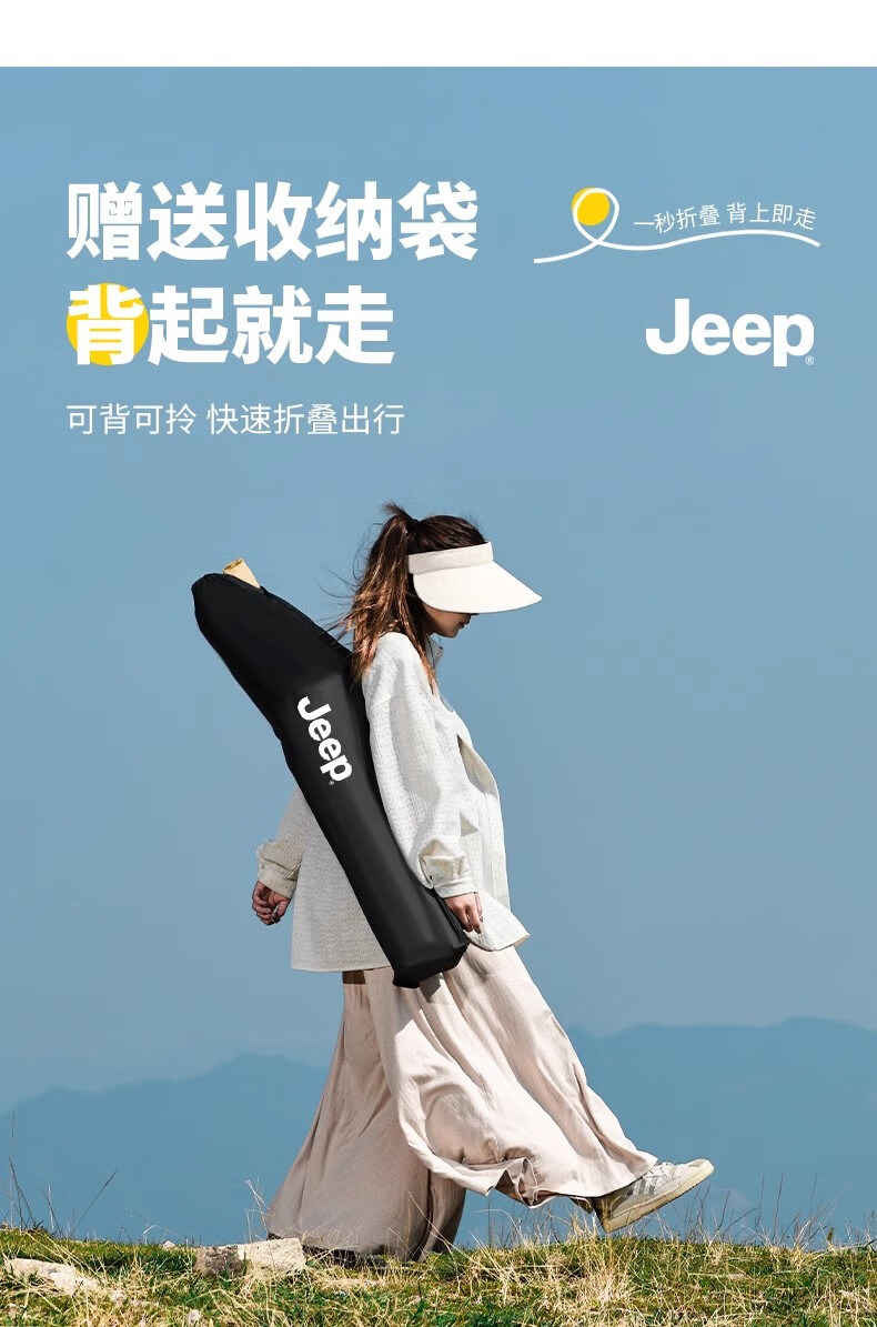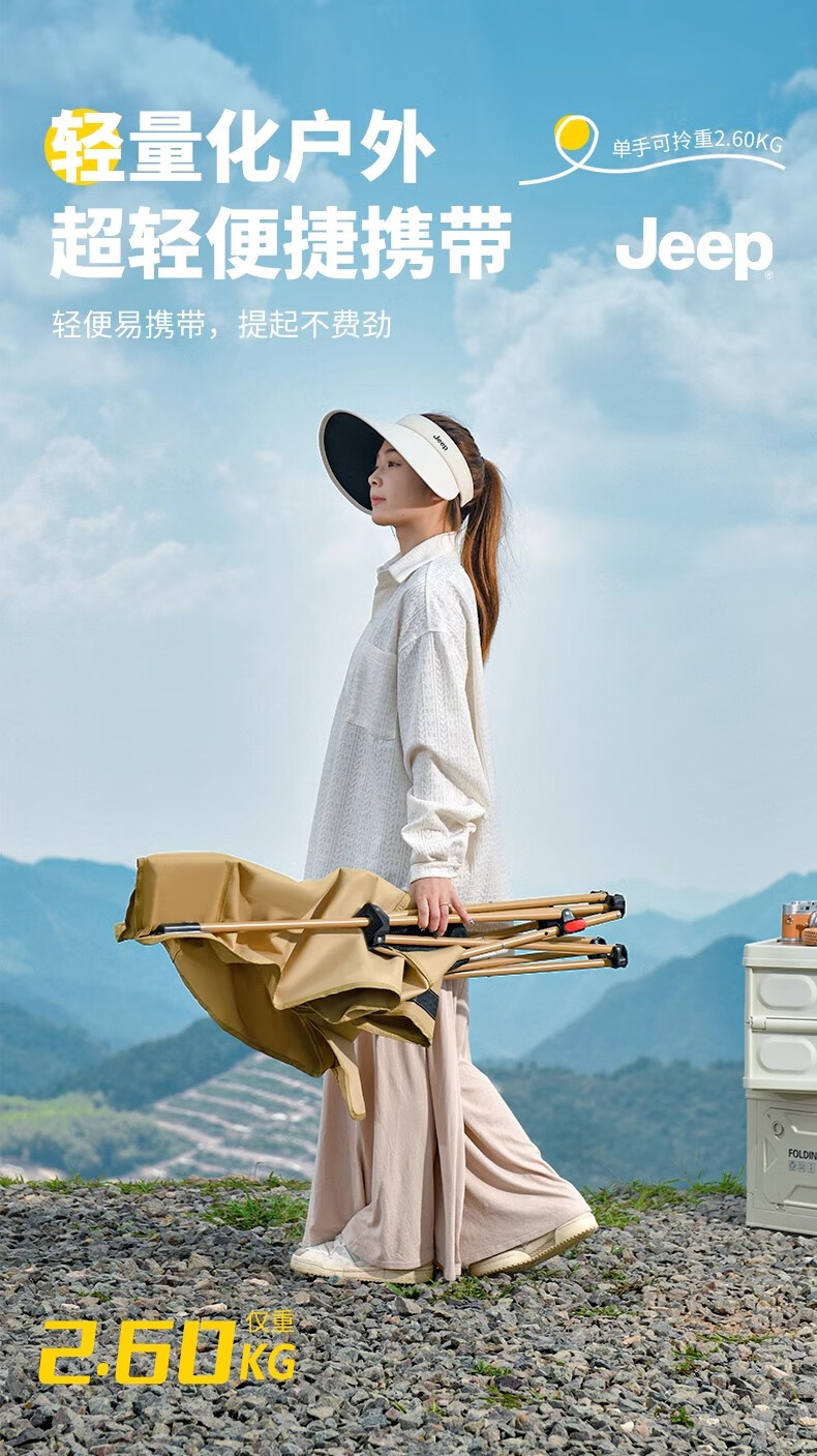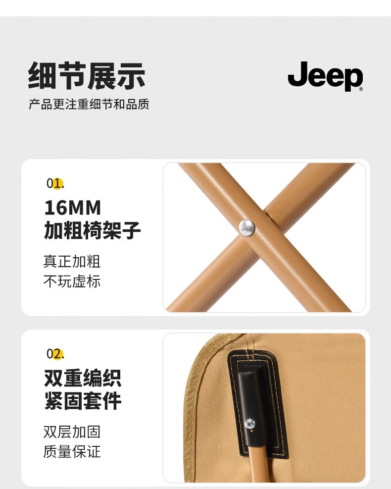 JEEP户外装备便携折叠椅露营沙滩躺椅钓鱼椅高靠背凳月亮椅午休椅坐椅 【曜石黑】三挡调节【可倚坐躺】-承重300斤