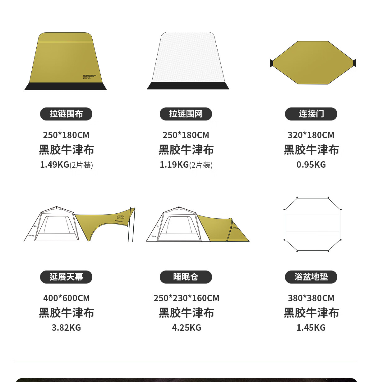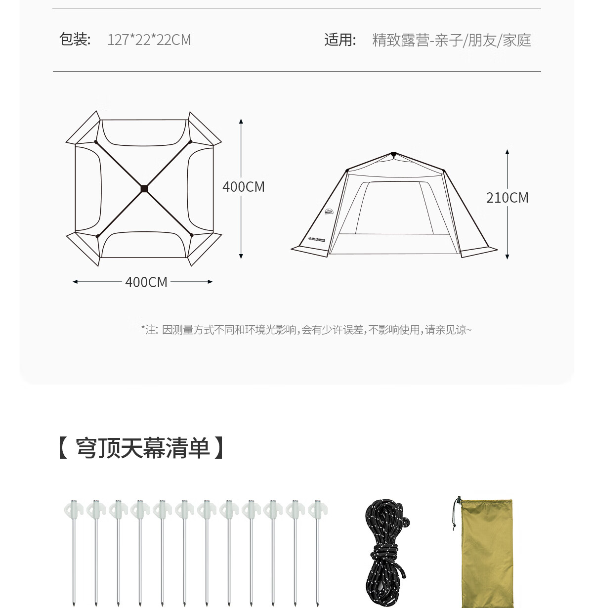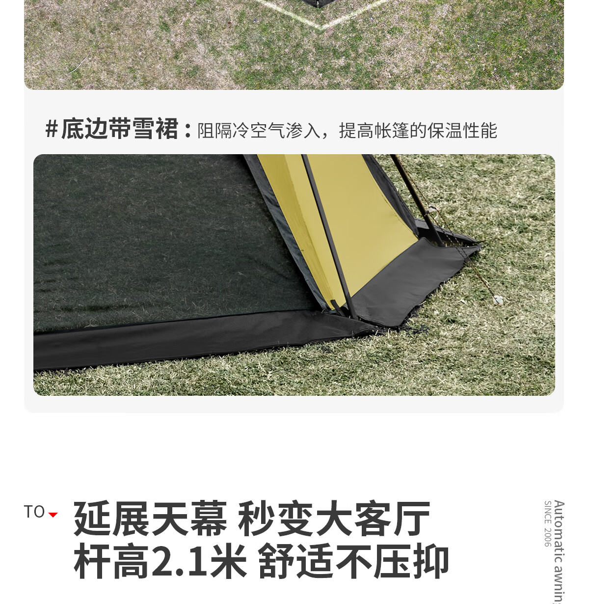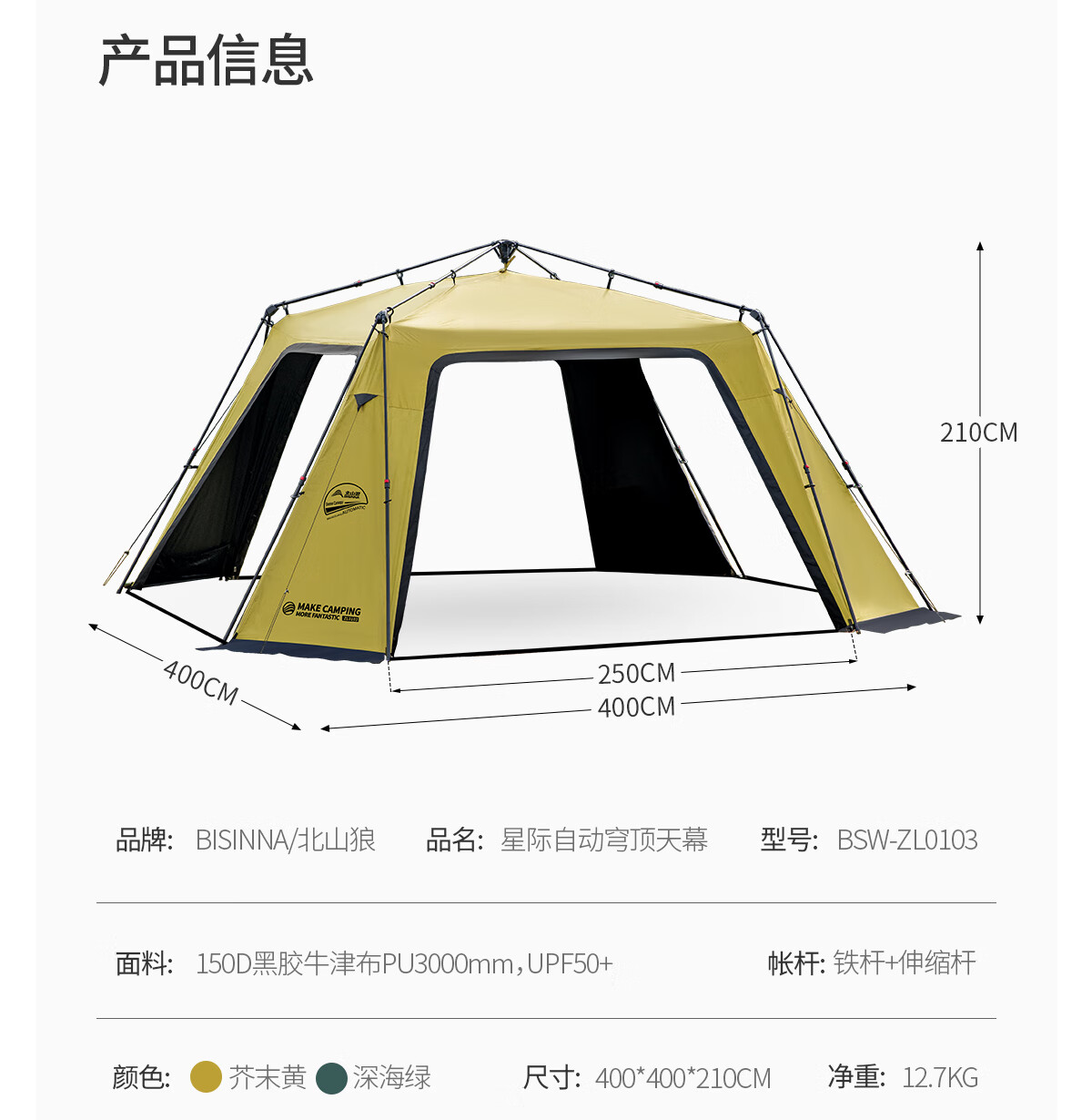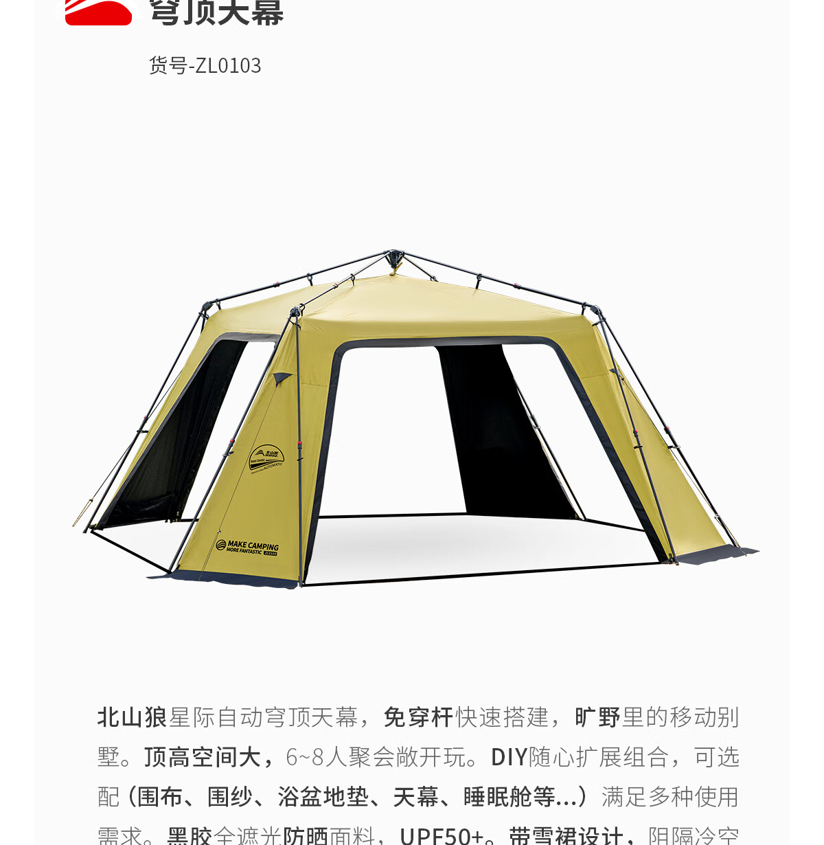 北山狼黑胶速开免搭建穹顶天幕帐篷户外露营装备超大空间防晒遮阳 芥末黄-拉链围布【2片装】