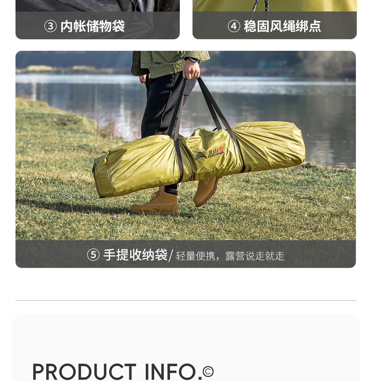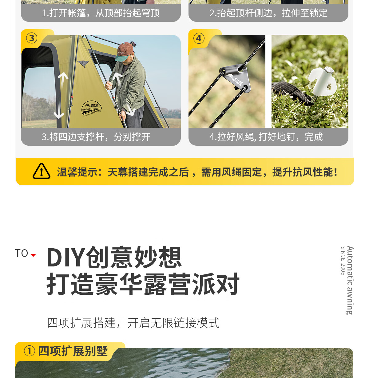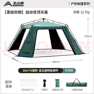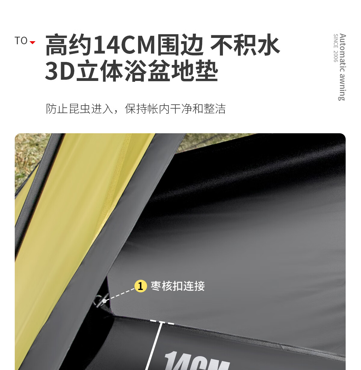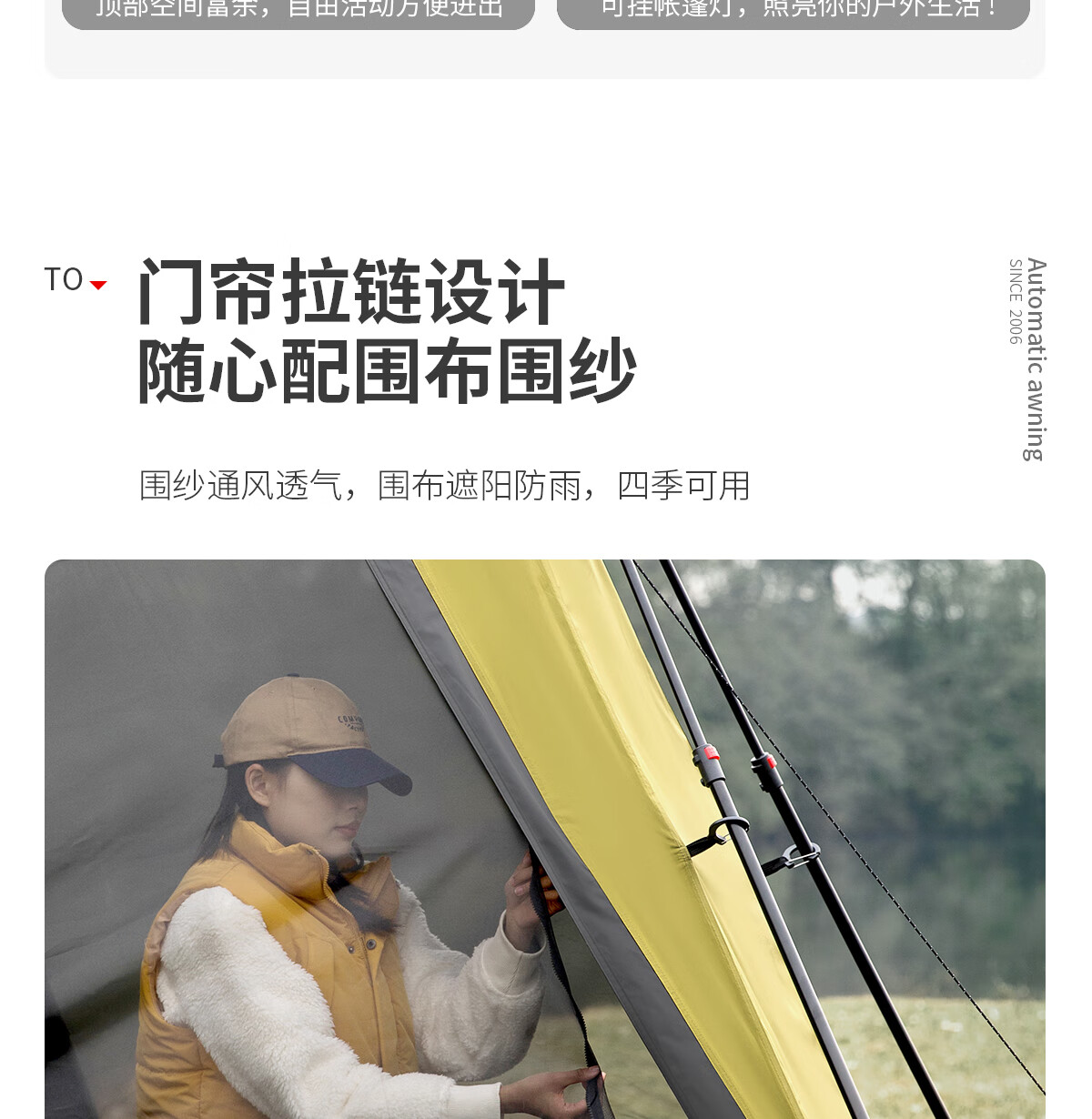 北山狼黑胶速开免搭建穹顶天幕帐篷户外露营装备超大空间防晒遮阳 芥末黄-拉链围布【2片装】