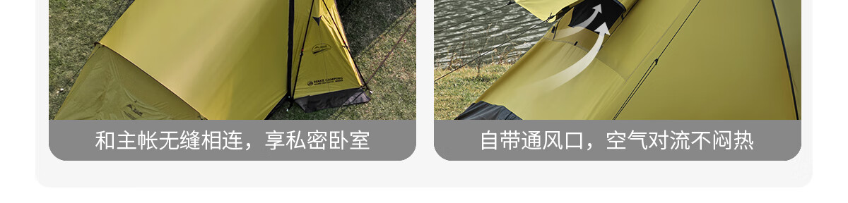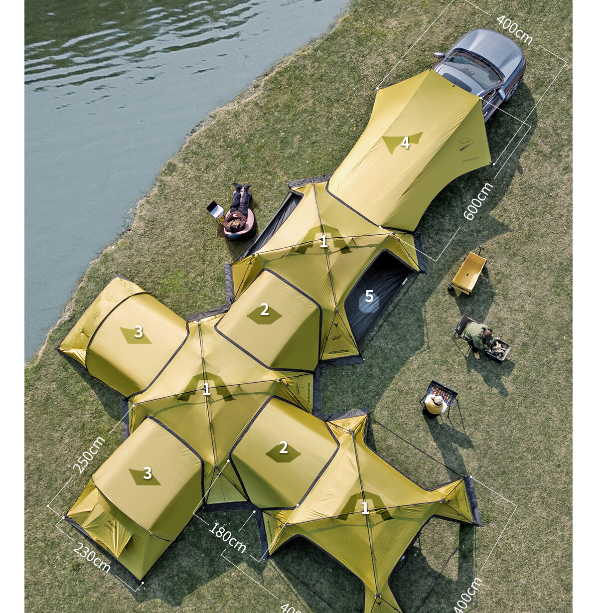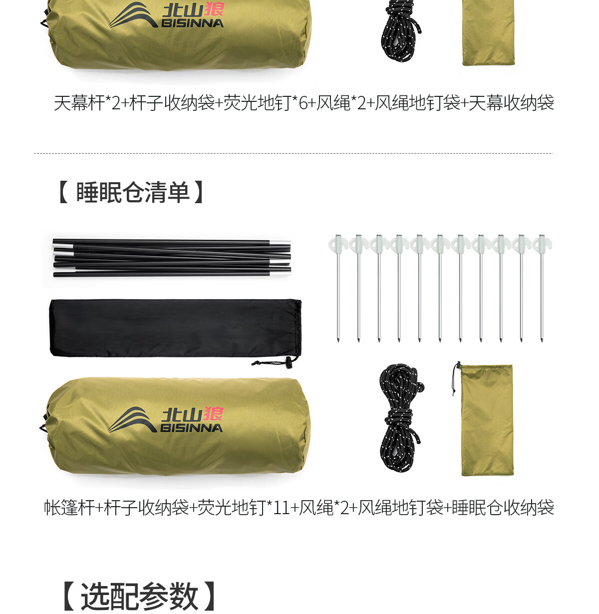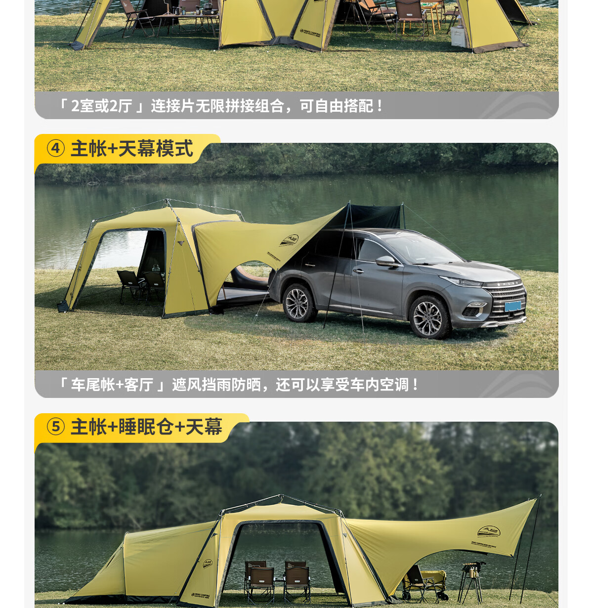 北山狼 四角自立速开天幕钛黑胶防晒遮阳户外露营大空间穹顶可拼 芥末黄-睡眠仓【1件装】