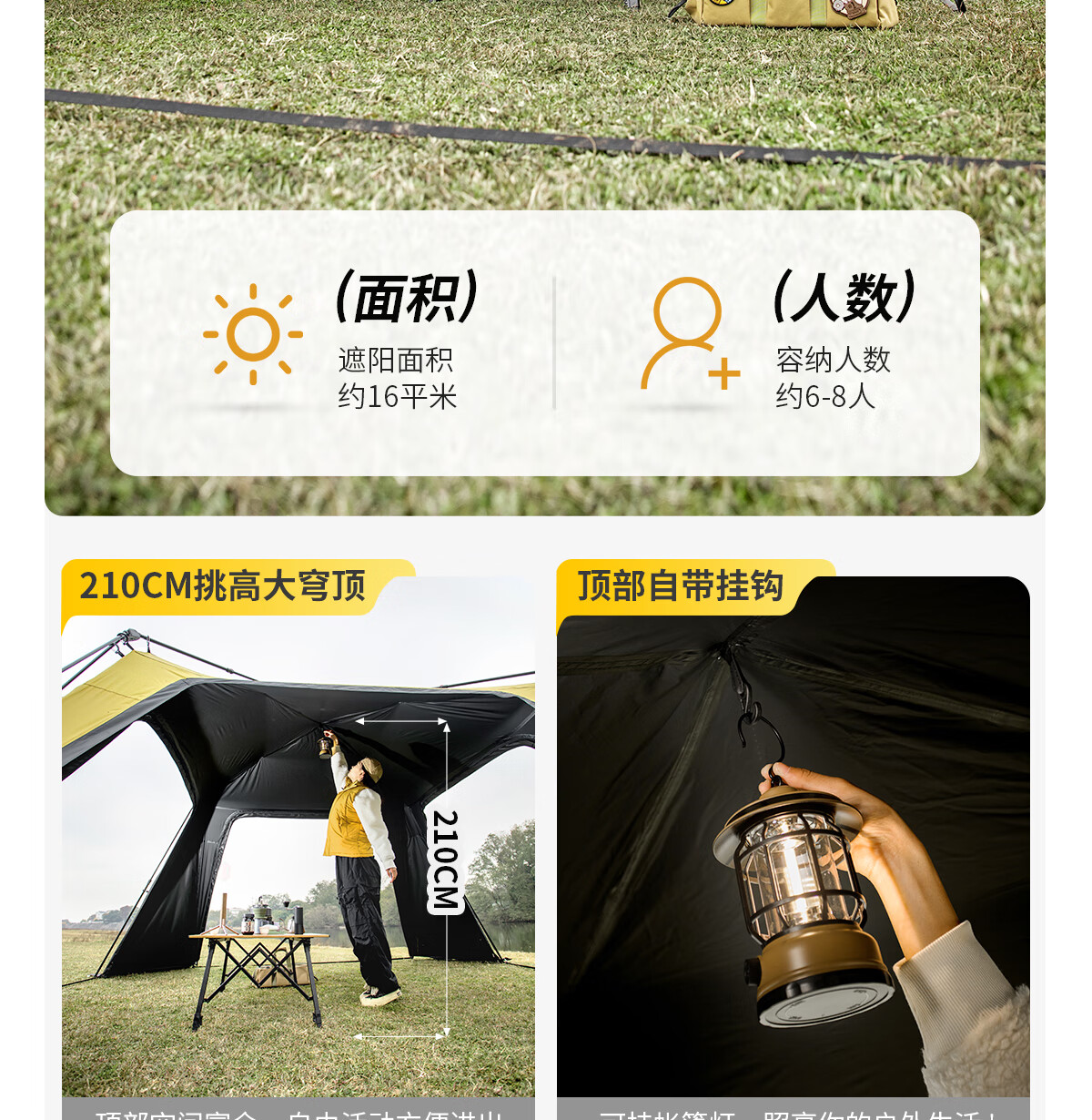 山之客遮天酷拓户外庇护所营地大型防雨防晒牛津布多功 450*300流沙金遮天 5-8人
