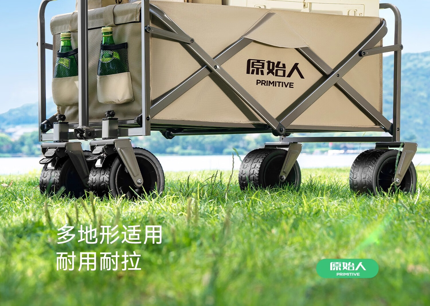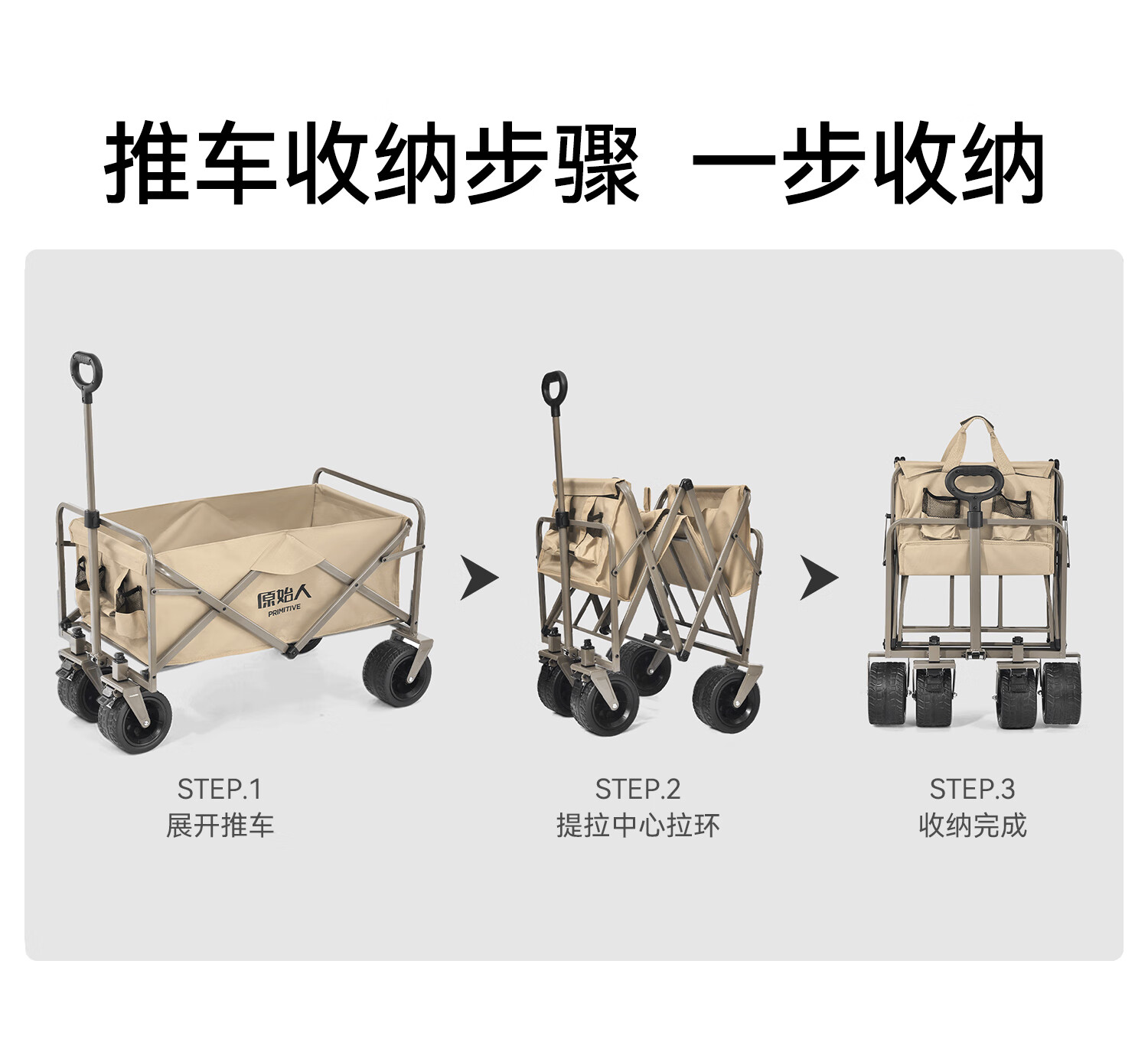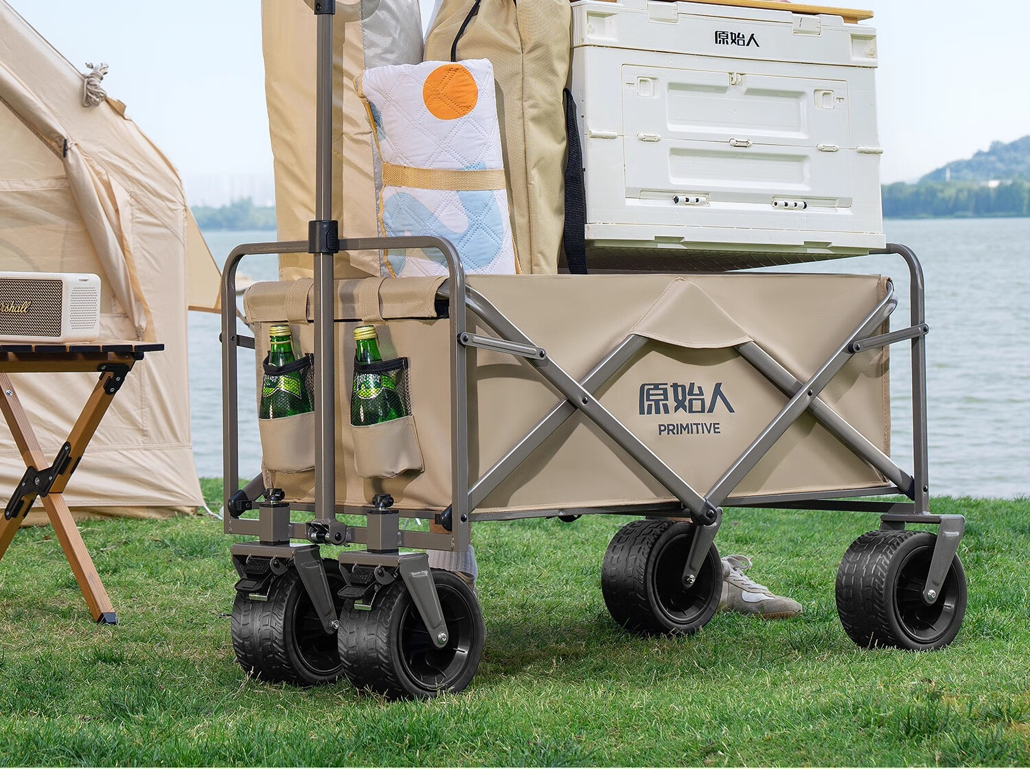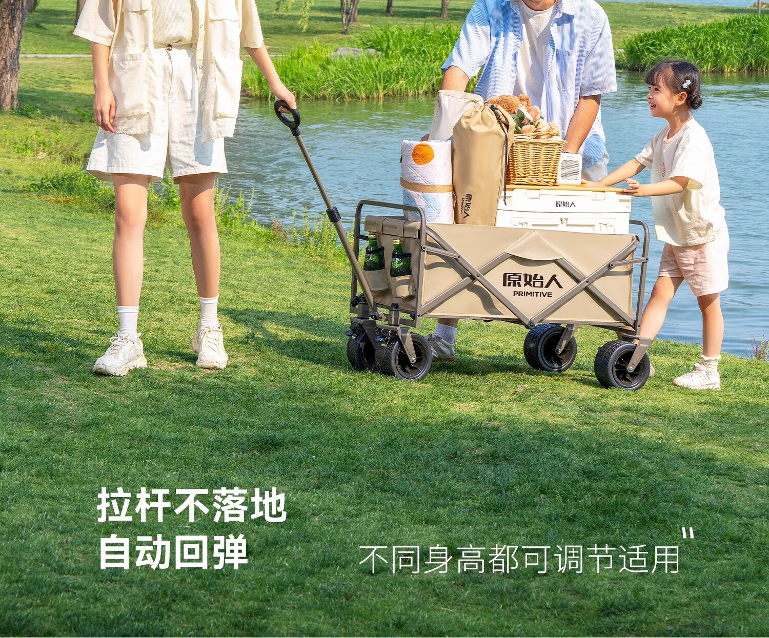 原始人(The Primitive) 露营推车可折叠户外手推野餐车营地拖车遛娃拉杆小拉车桌板野营 160L 升级款白架卡其【万向轮】