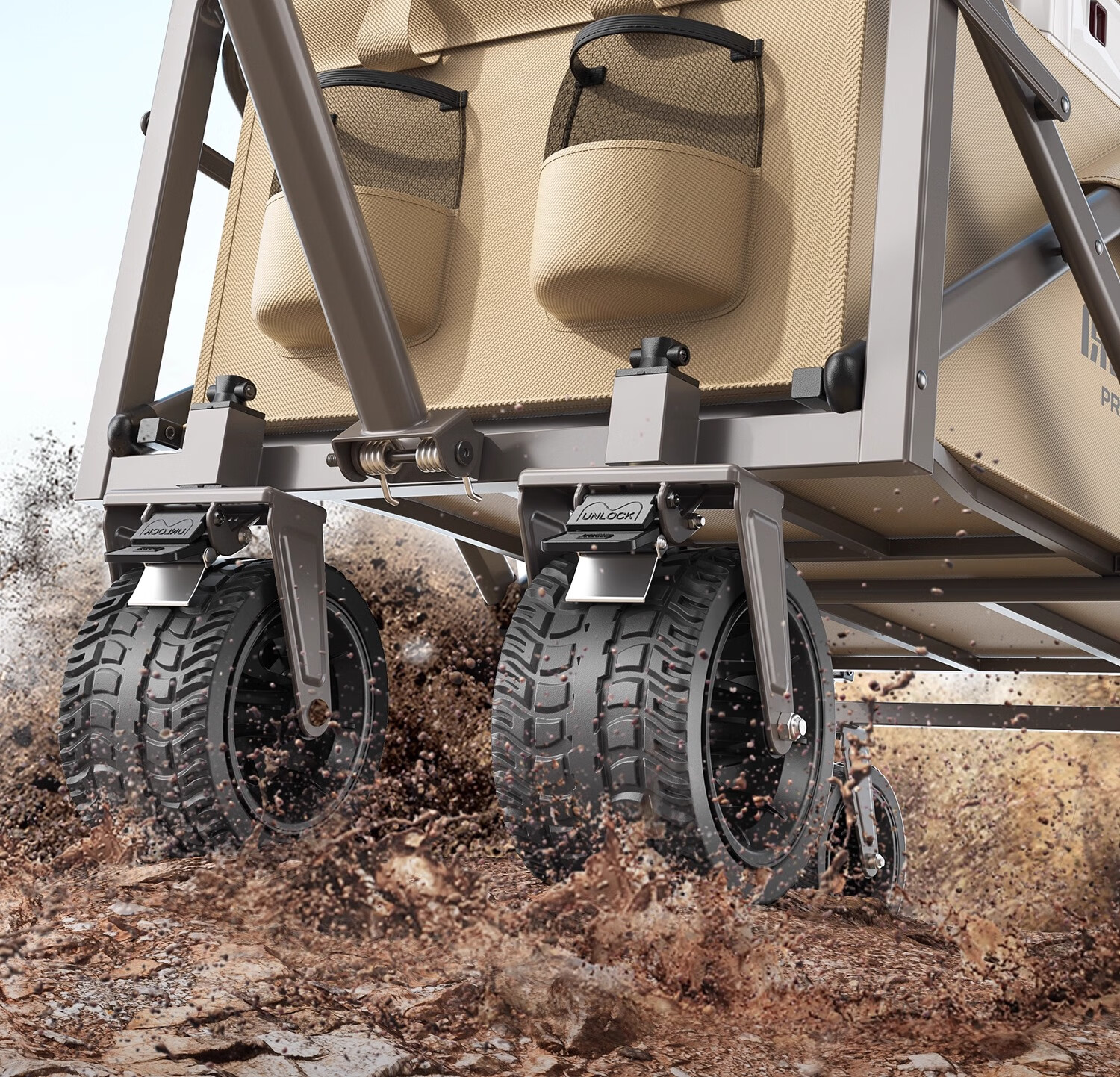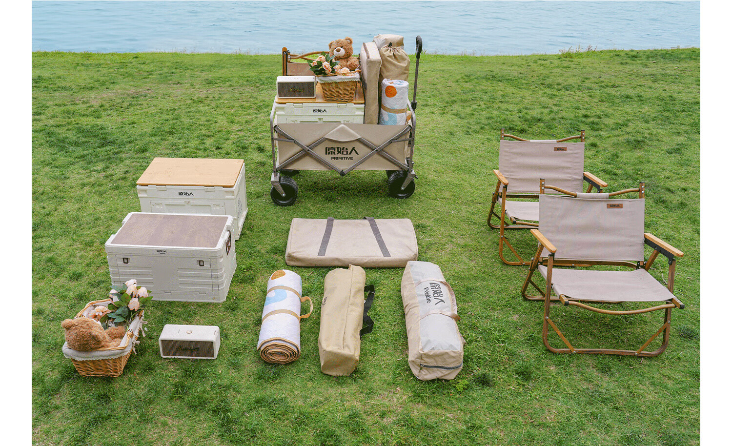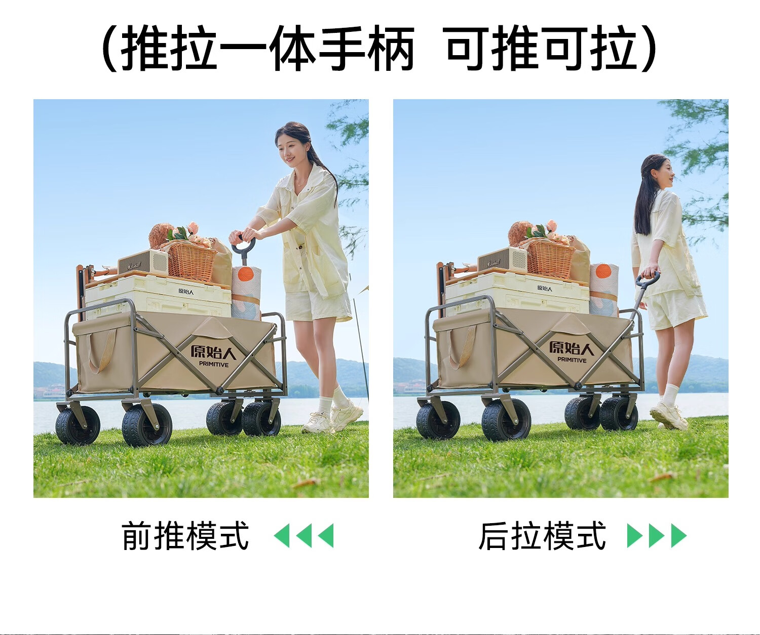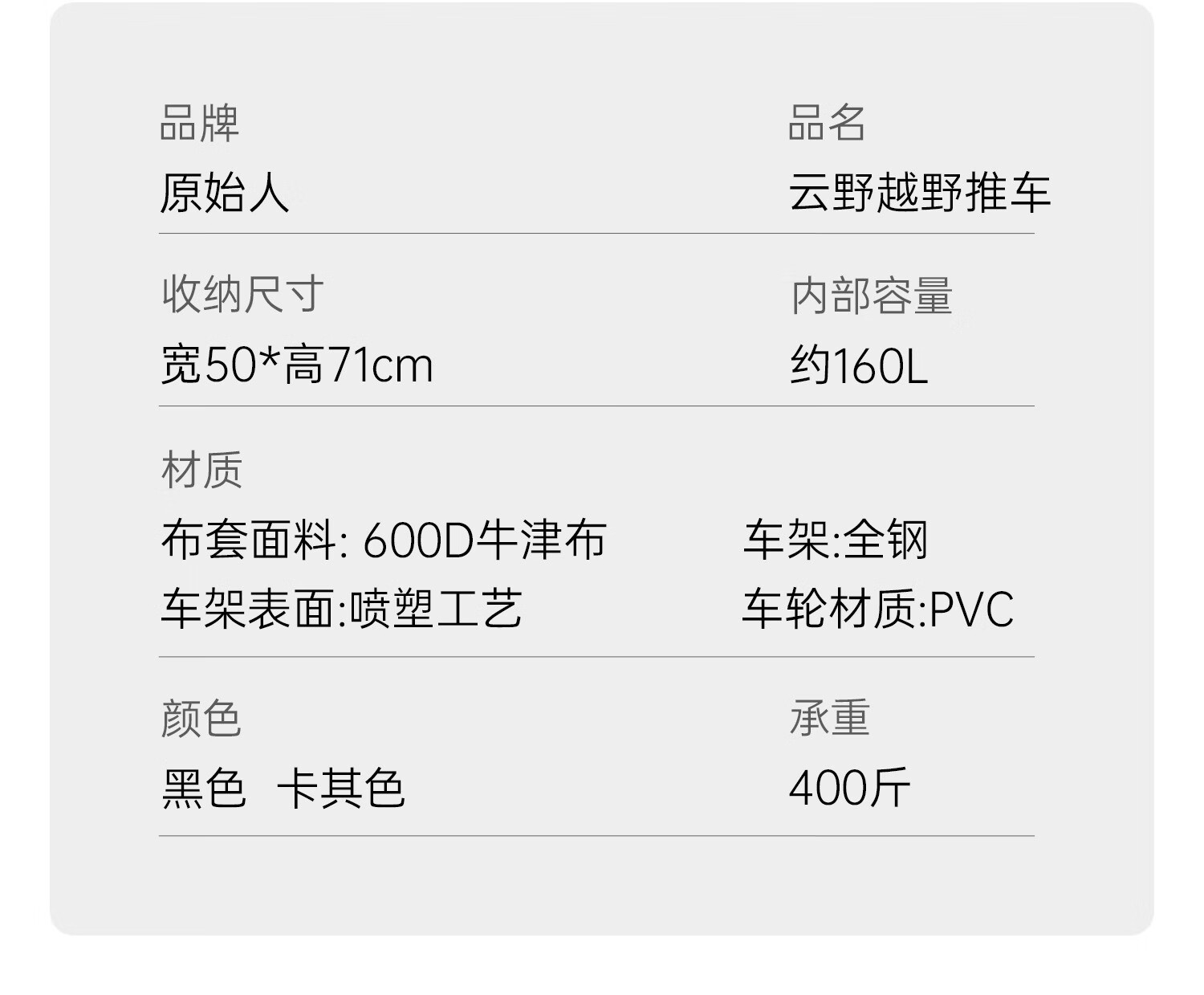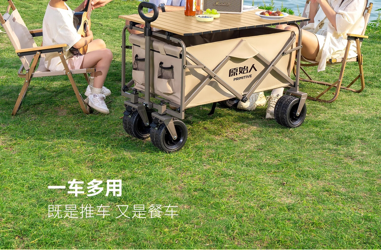 原始人(The Primitive) 露营推车可折叠户外手推野餐车营地拖车遛娃拉杆小拉车桌板野营 160L 升级款白架卡其【万向轮】