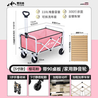 野徒者露营车户外推车野餐车儿童可躺露营装备折叠摆摊营地车小买菜车 樱花粉-5寸万向轮+72桌板 升级加粗全钢车架