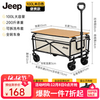 JEEP户外露营折叠车野餐车营地车露营装备便捷拖车推车购物 旅游买菜 米白色 100L 无刹车 桌板套餐