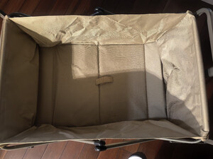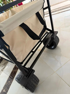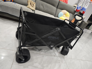 非常的小巧,折叠起来,非常容易存储车子的轮子很大很厚,比较适合各种崎岖的山路和平展的草地。然后这个车的质量非常好,它这个牛津布的很厚很厚实,嗯,然后呢也比较容易取下来清洗是近期买过的商品中最满意的折叠车了。露营的朋友们,天气温度降下来,赶快去野外吧