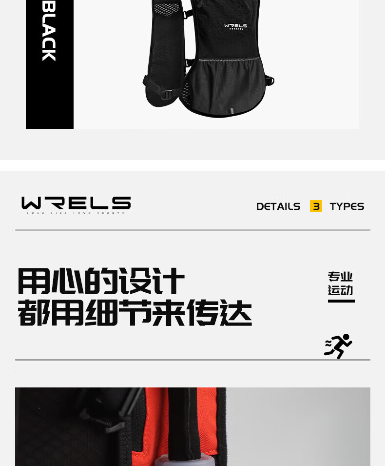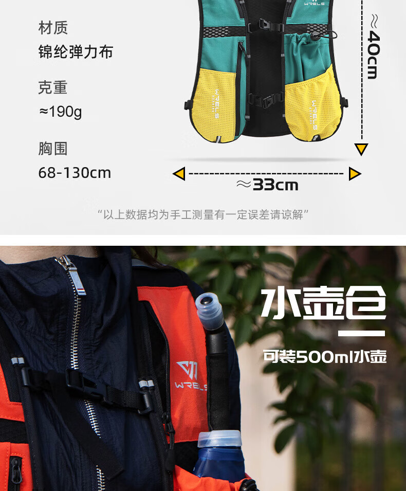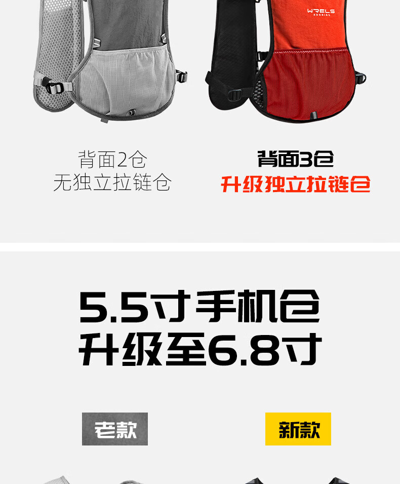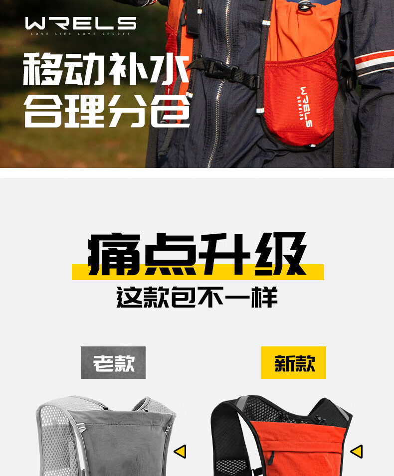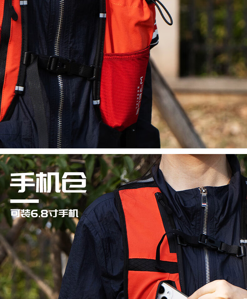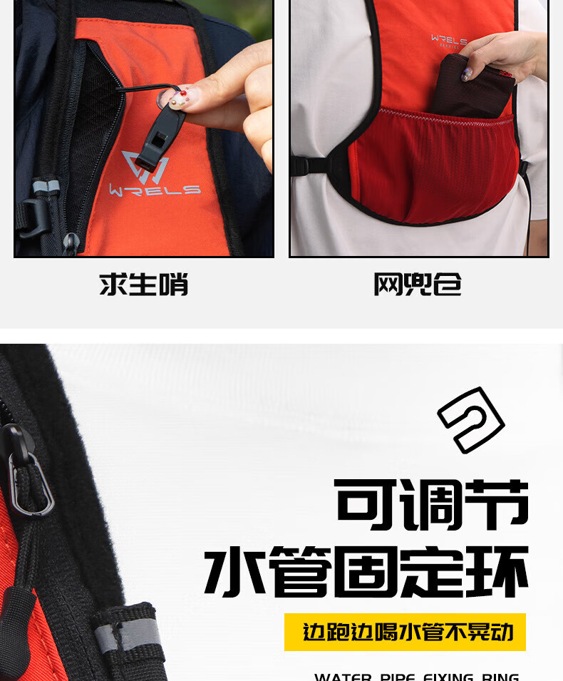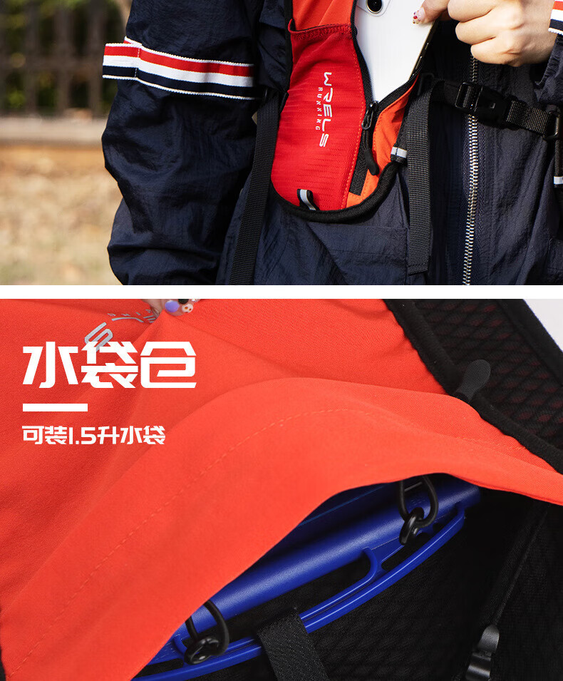 WRELS越野背包跑步背包男女户外骑行马拉松双肩包水袋超轻多功能 橙红 单个背包