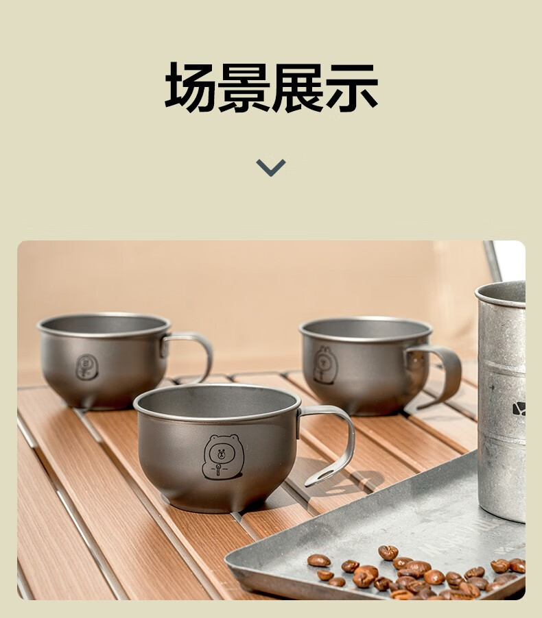 牧高笛(MOBIGARDEN) Line Friends合作款 户外露营便携钛咖啡杯享宴 莎莉鸡钛色