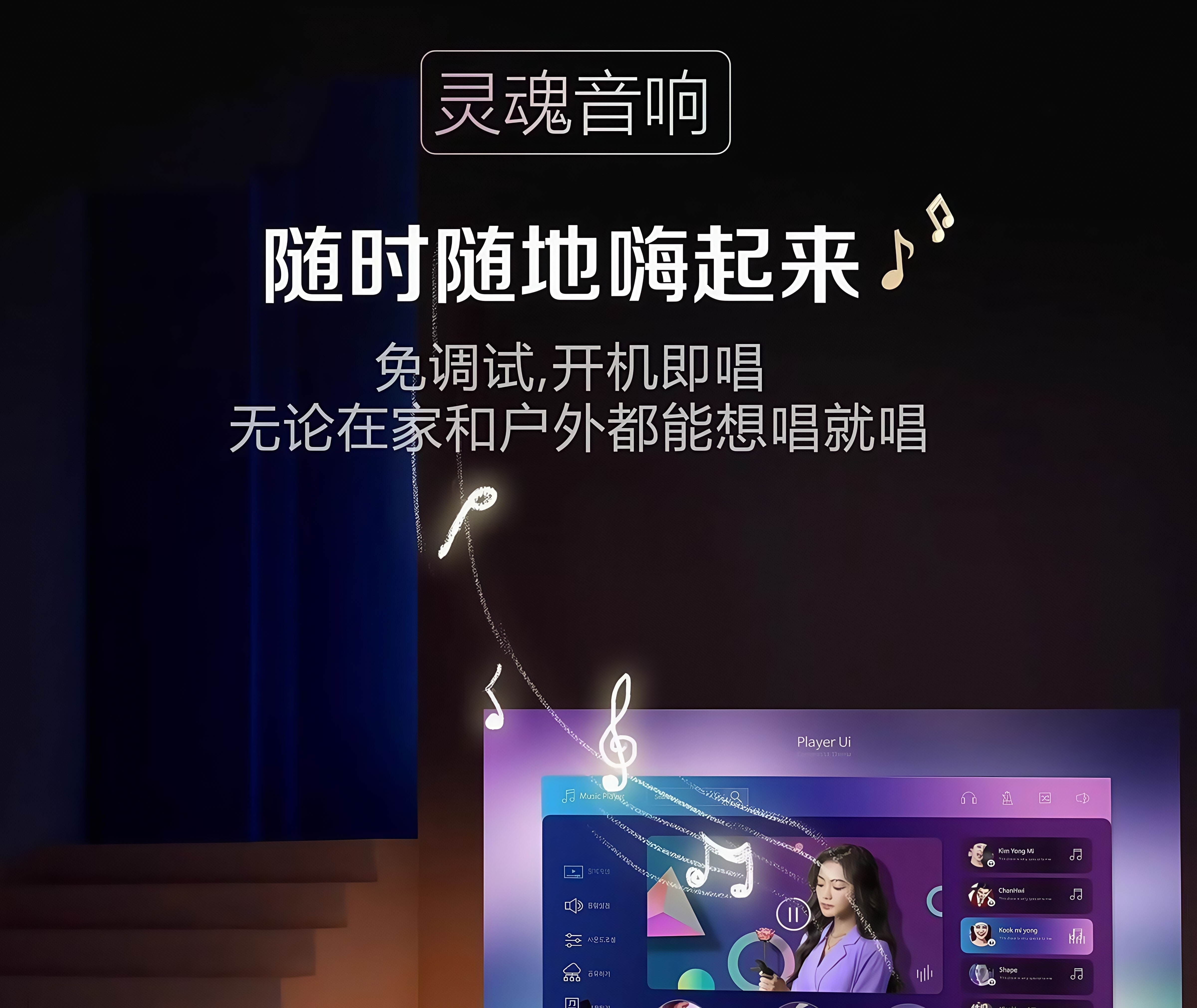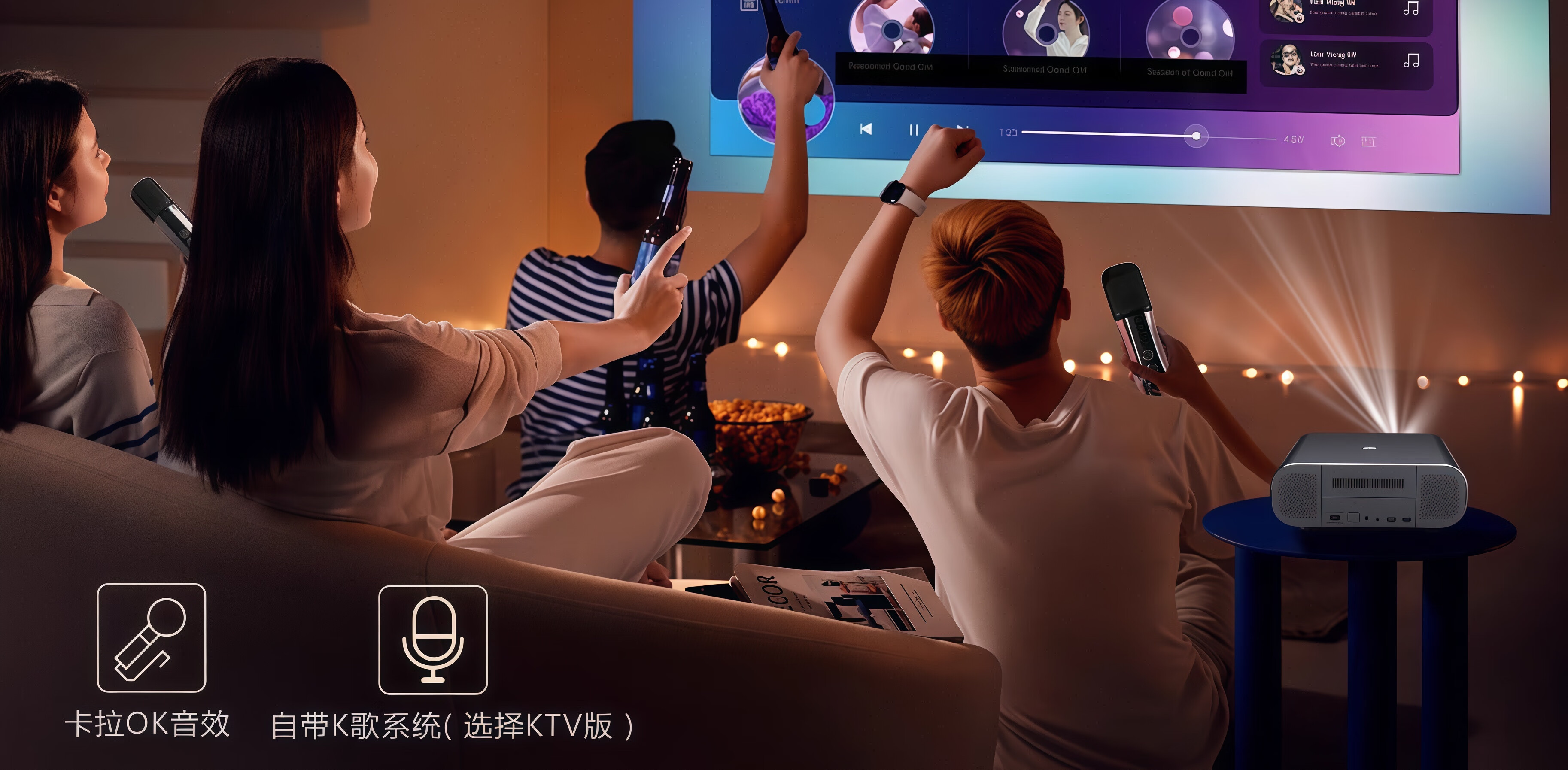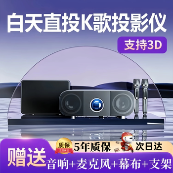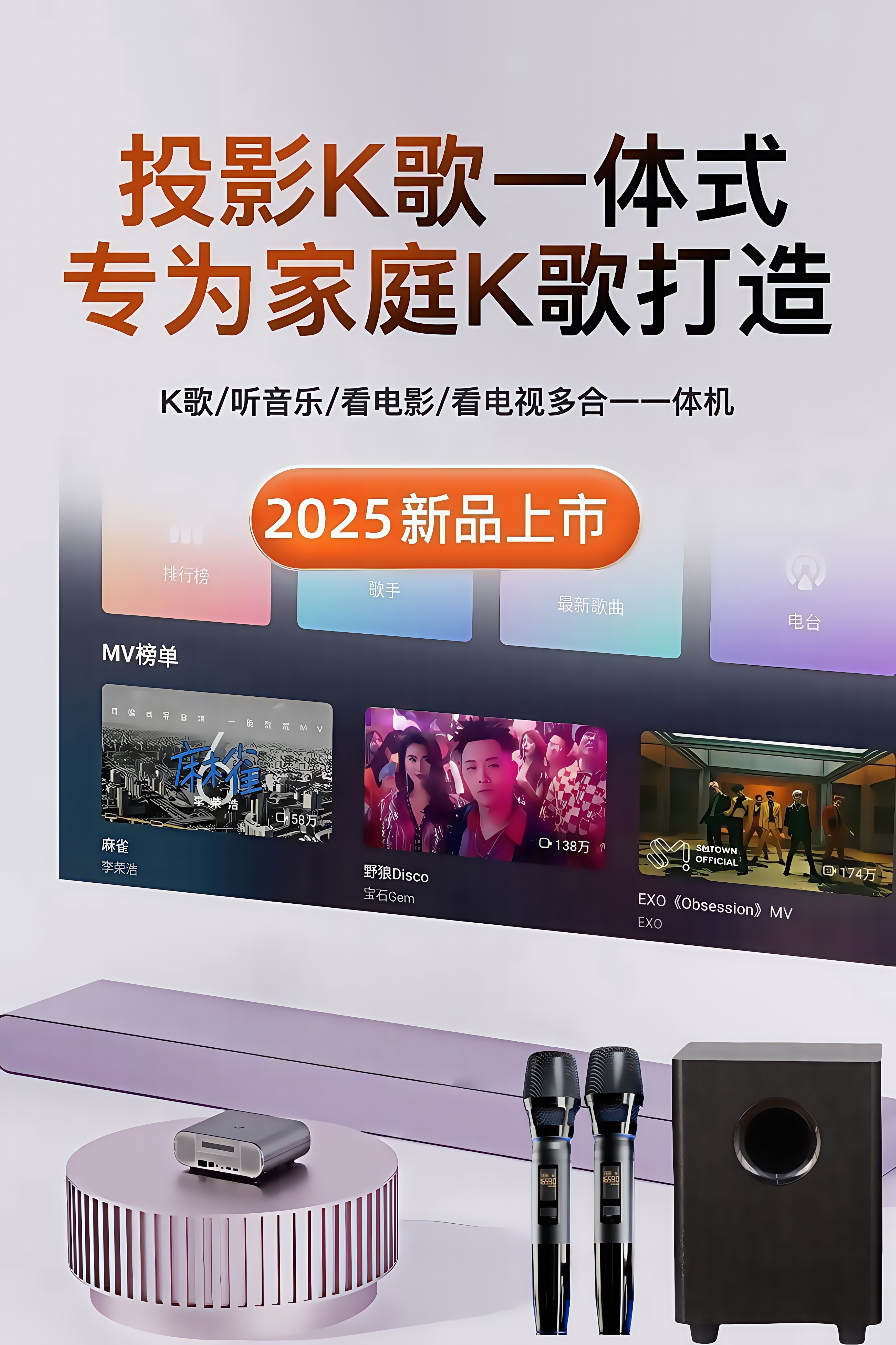 HKMW华为机HUAWEl适用 ktv投影仪卡拉ok一体家用点歌k歌家庭高清音响套装户外投影机 基础版【手动对焦+ 单麦克风+哈曼音效音响】