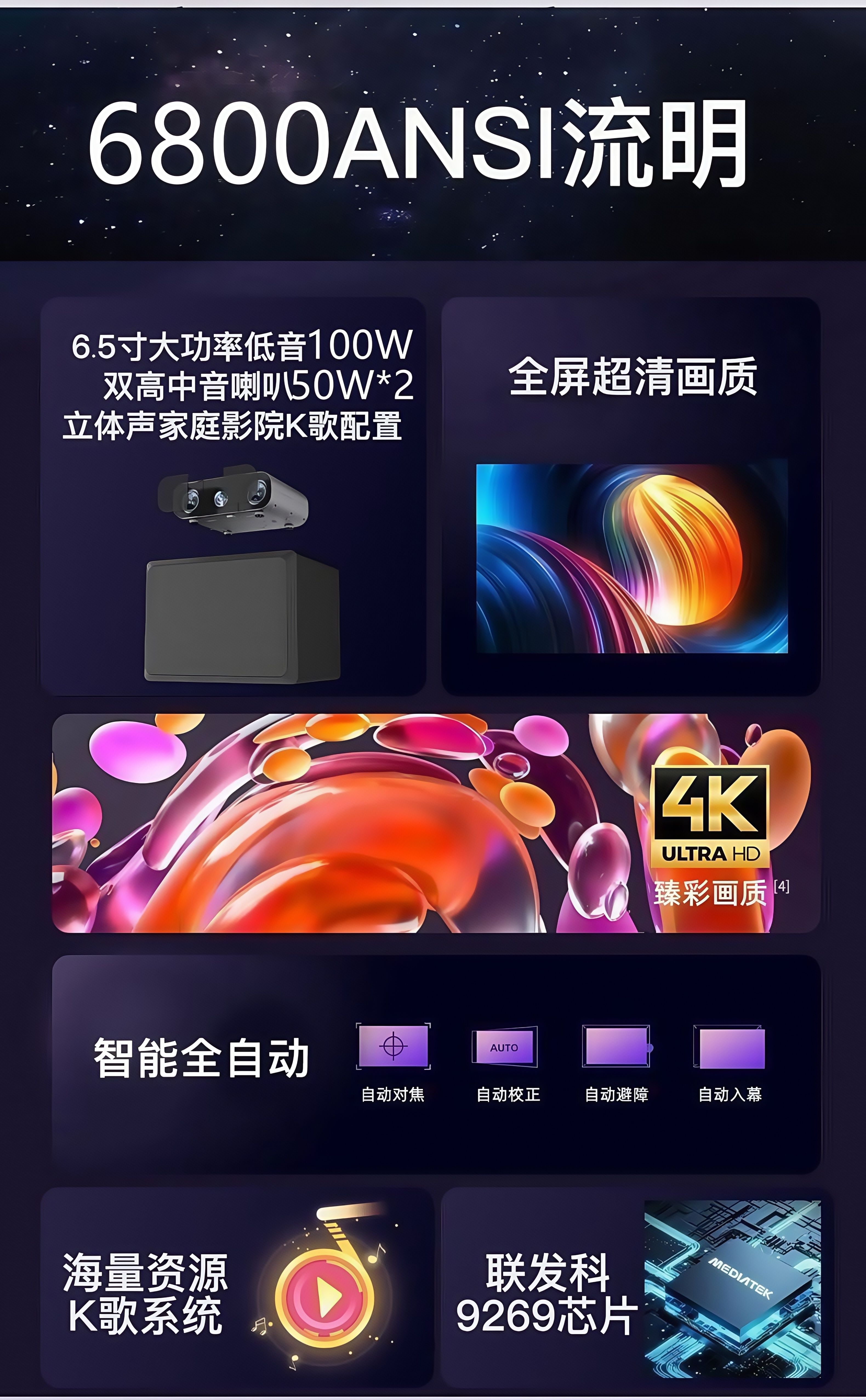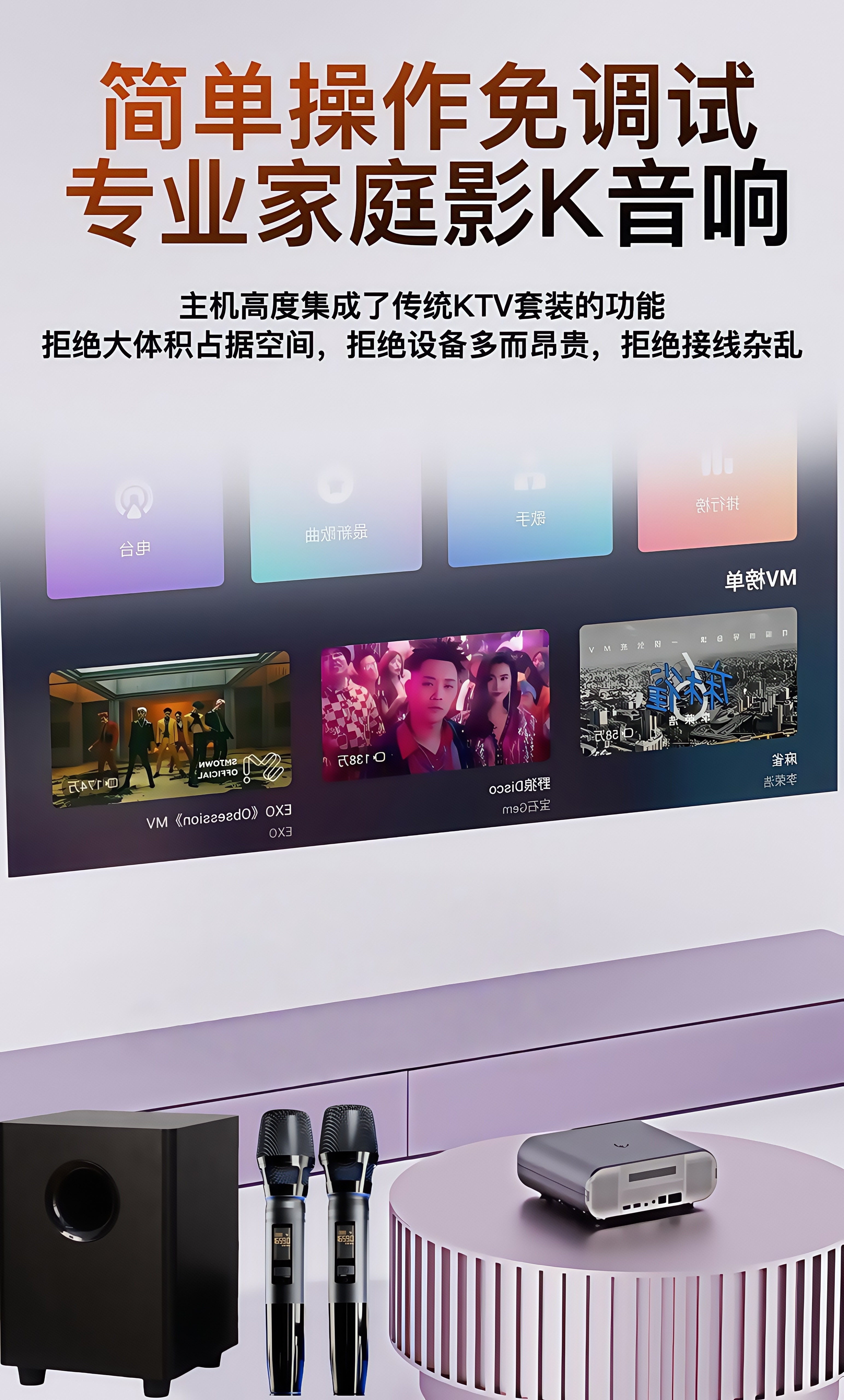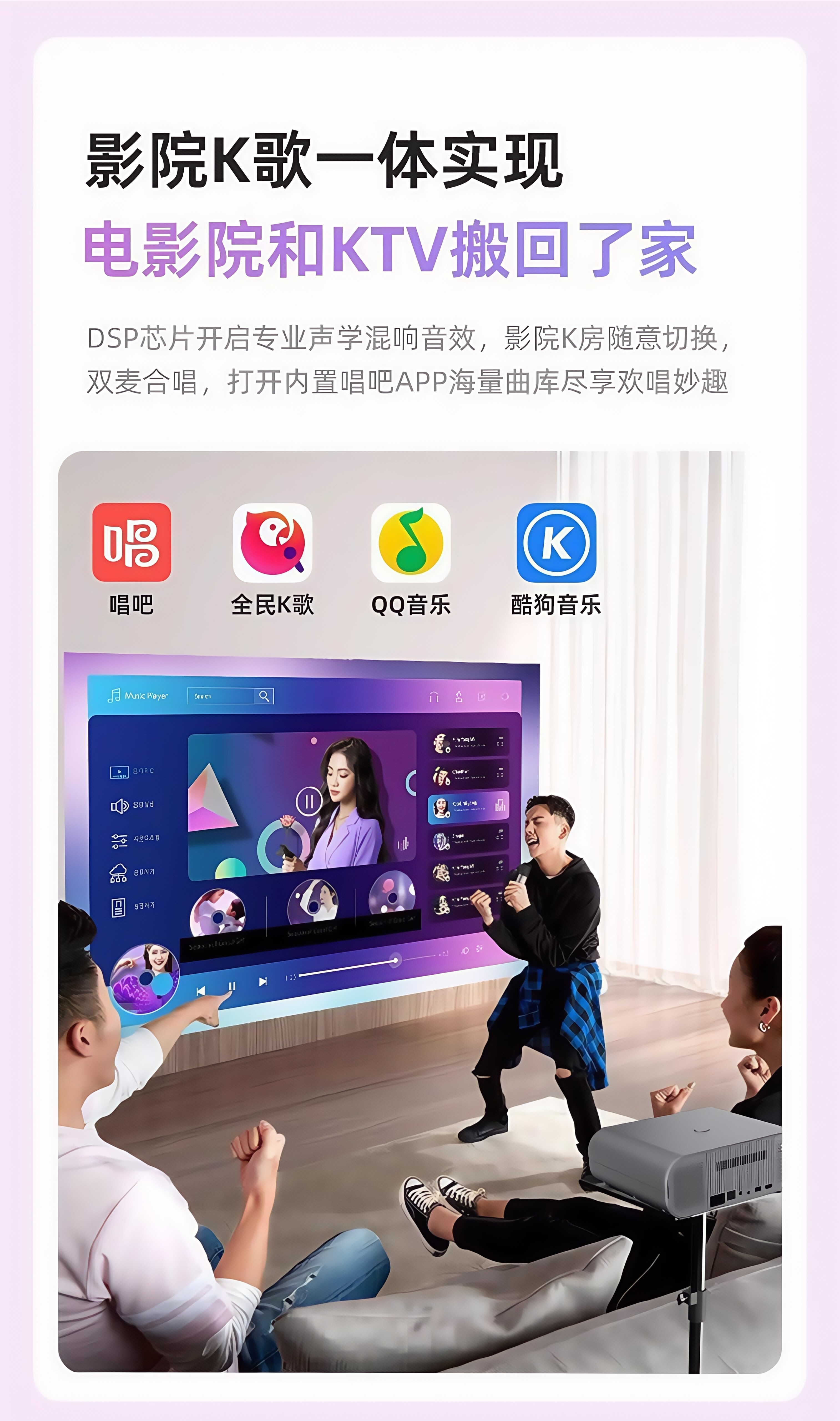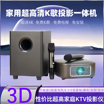小浠米新款K歌投影仪家用超高清4K家庭影院KTV投影机卡拉OK点歌一体机白墙直投客厅3D电视智能投屏加幕布 投影仪+双话筒+低音炮+电动幕布+支架