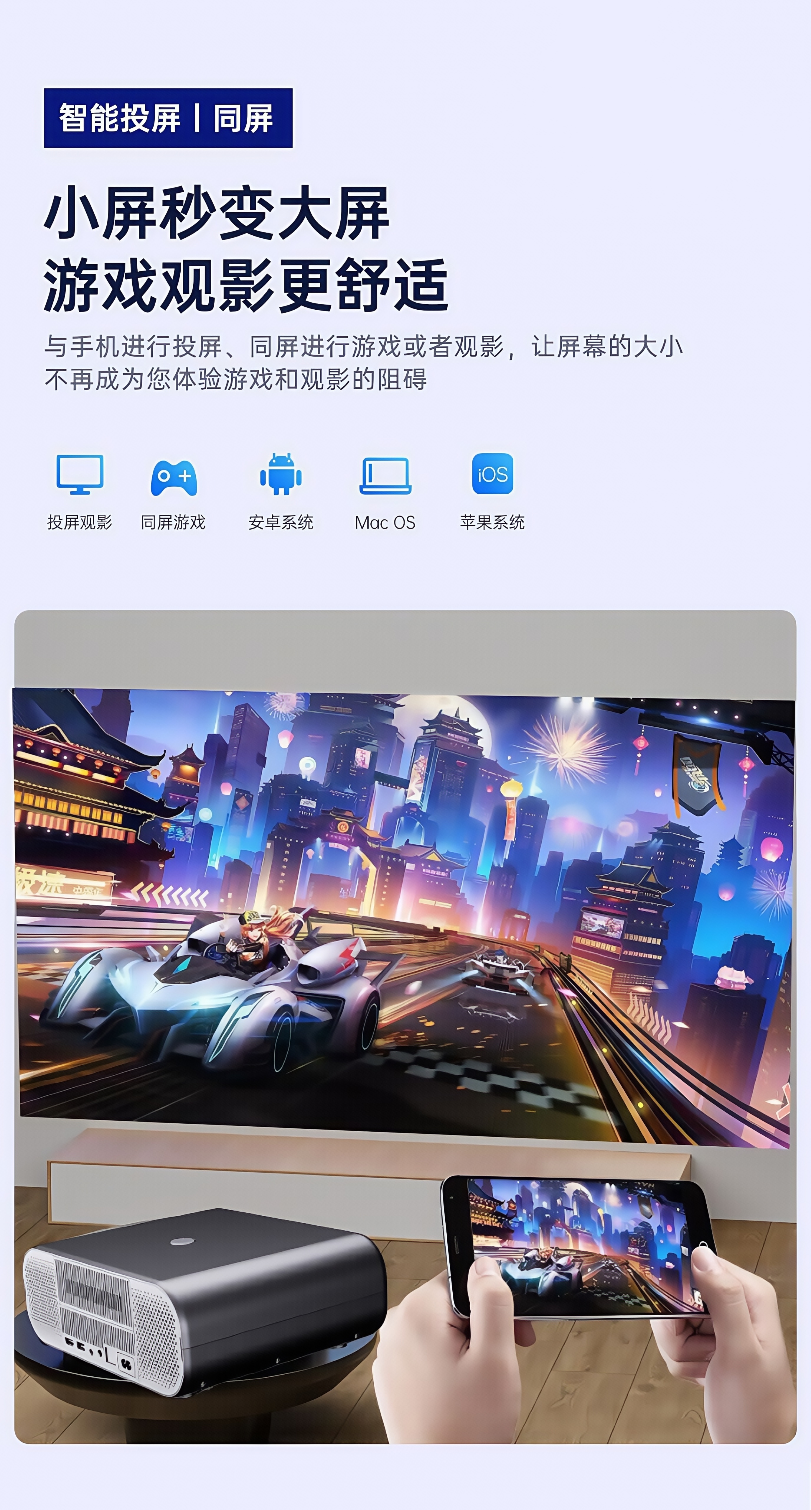 激光投影2025全新FHDMAX加强版高清影院级投影仪全封闭光机4K投影 大功率高亮千元机皇