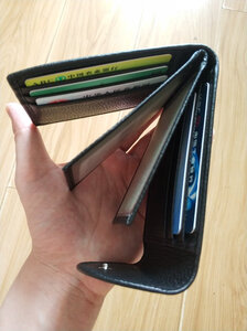 总结放最上面:可以闭眼入 详情仅供参考 优点: 1 材质耐造,手感舒适 2 大牌,不明显以至低调的,又不失风度的3D立体压印logo 3 由于中部有4个 透 明 卡位,驾驶证无需另外买证件包 4 体积适宜,并没有过厚的现象 5 卡位充足(个人而言),共12个卡位(感觉这辈子用不了这么多卡😂) 6 几乎无溢价,对想买真牛皮包的我来说价格很棒了 缺点:因为我手机有NFC功能,包贴着手机就会触发NFC。部分商家称其为“不妨盗刷” 。其实对我个人来讲,并没有什么影响 说明:1实物并无色差(图片里我调色处理了,别在意) 2关于材质问题我已经做了很多功课,此为真皮,自然也是正品 3入手价约60块大洋