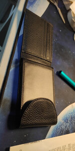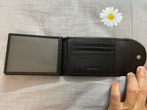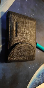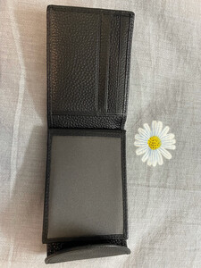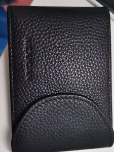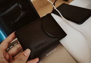外观颜值:看起来挺简约的,黑色的皮质纹路,尤其是那个开口处,隐藏的那个暗扣设计的挺好。 材质手感:皮质挺柔软,手感很舒服 容量空间:可以放很多卡还有证件 做工细节:缝线很精细,很满意 适用场合:商务一点点叭 其他特色:简约风格很nice
