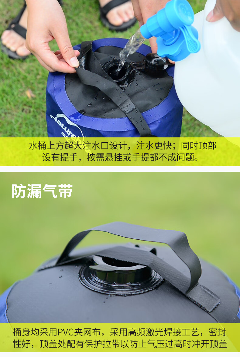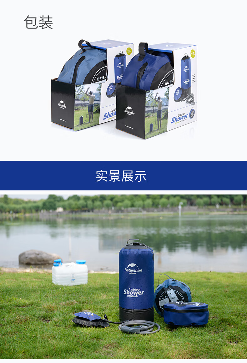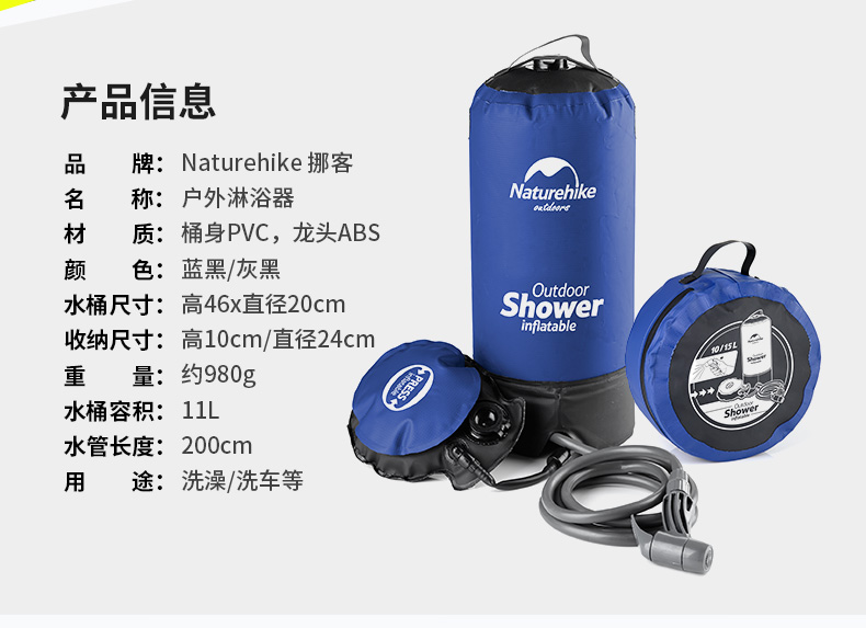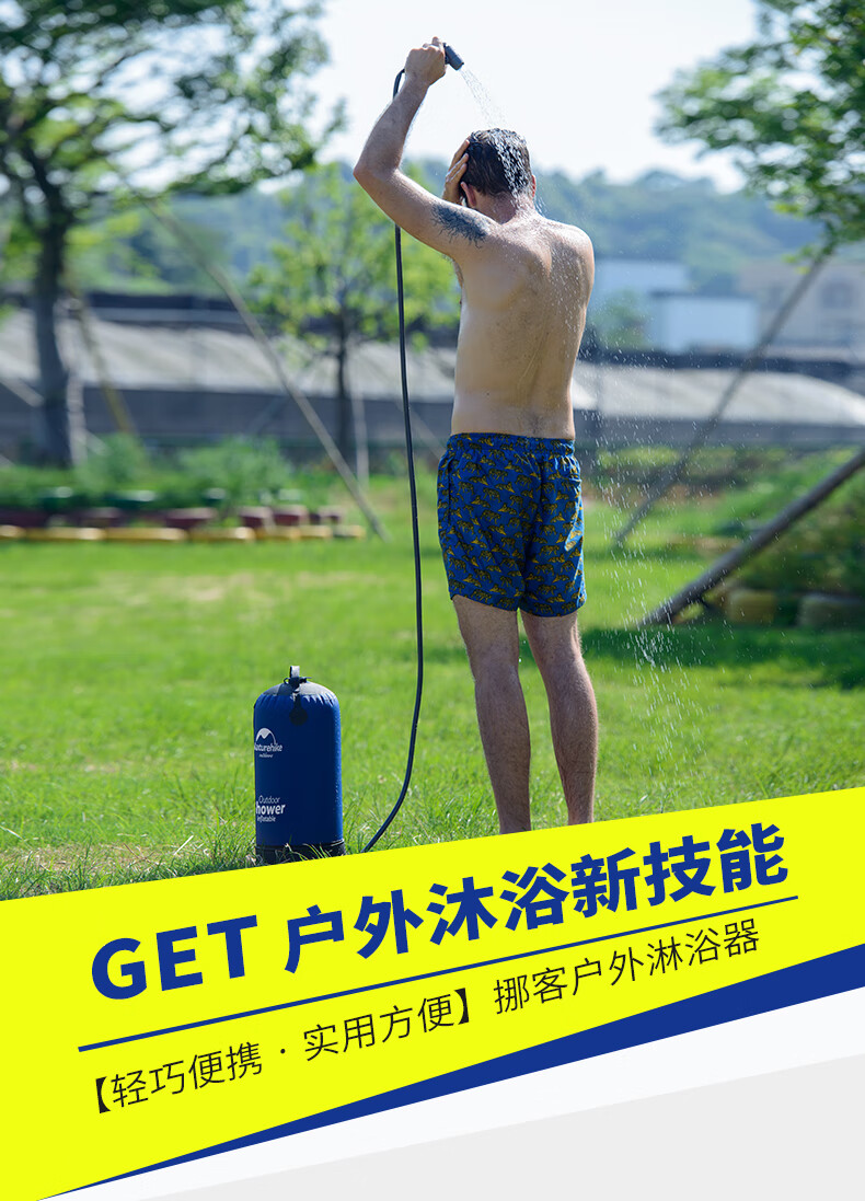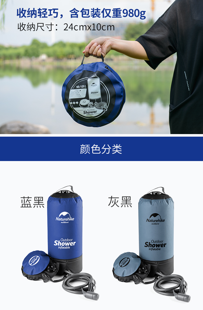 NatureHike挪客户外便携淋浴器 野外露营便携沐浴袋室外夏天洗澡淋浴器水袋 黑蓝色