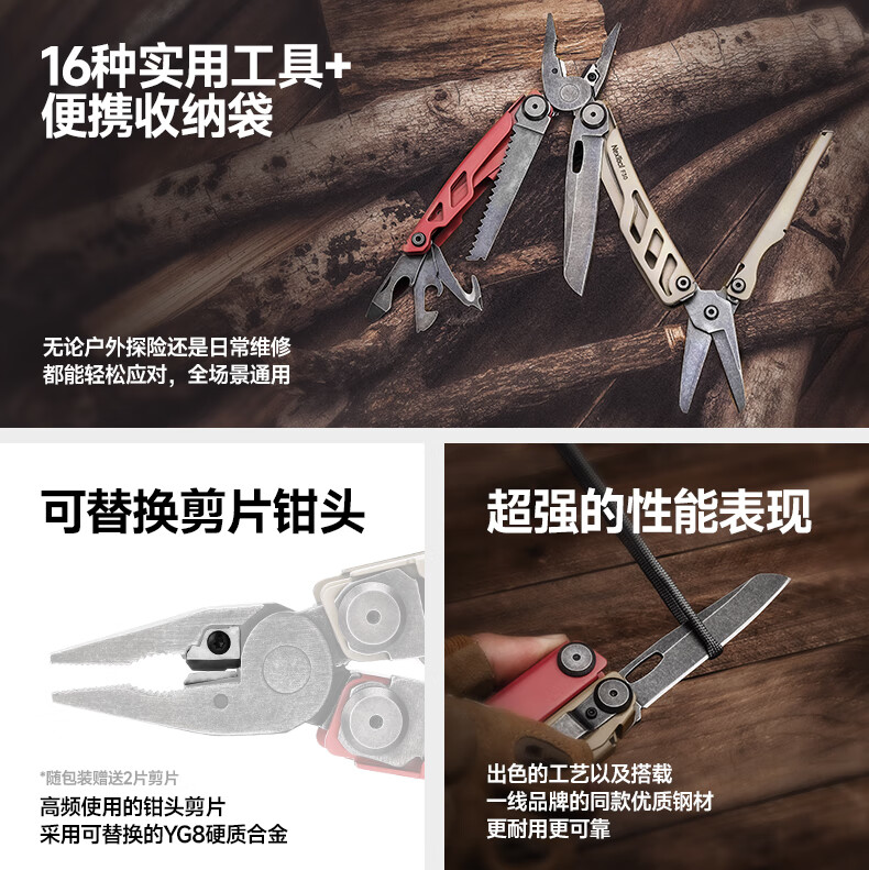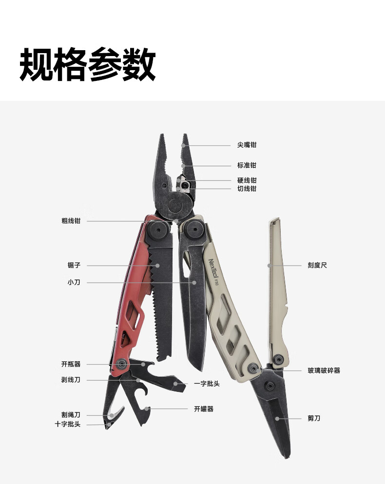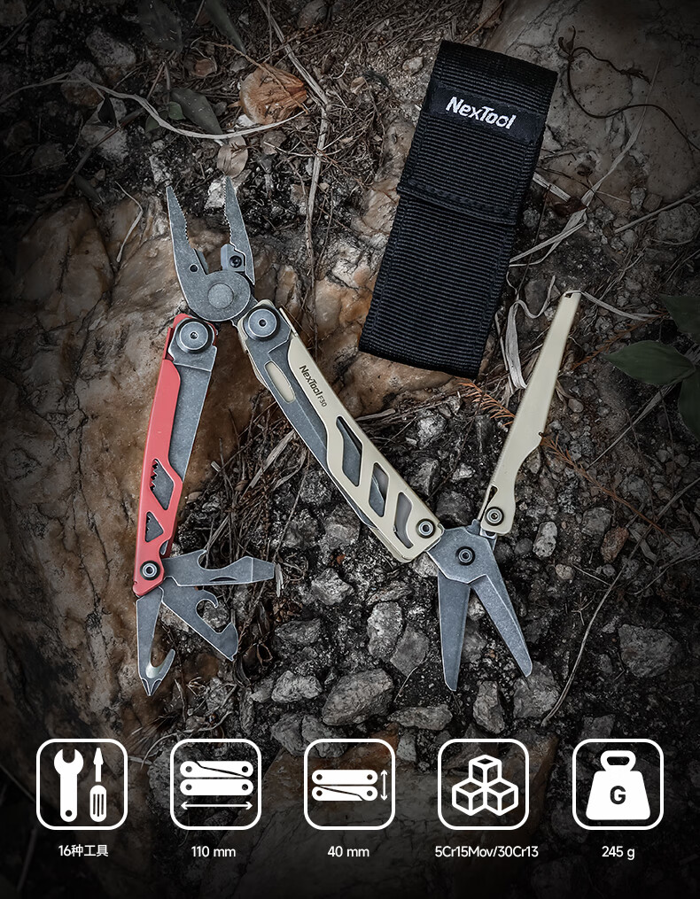 纳拓(NexTool)户外多功能刀瑞士军士折叠刀居家应急组合工具钳折叠不锈钢剪钳 战舰 Pro F30十六项多功能刀