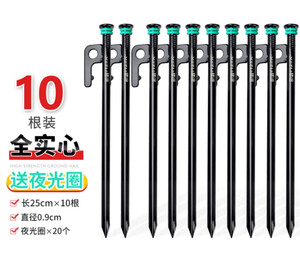 帐篷自带的地钉又细又短,遇有松软的土质根本固定不住风绳,在京东看这款地钉不错,收货后还赠送了夜光环,地钉质量不错,够厚重,30厘米的基本够用,这款地钉性价比高。