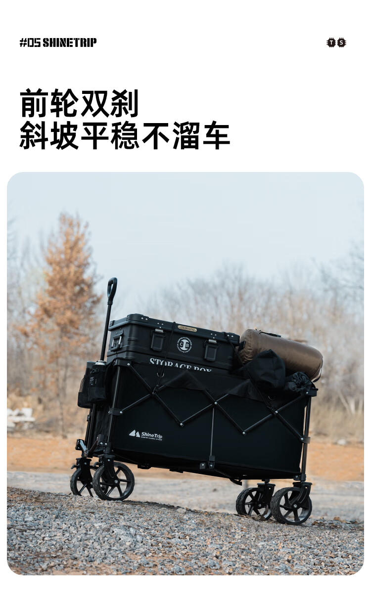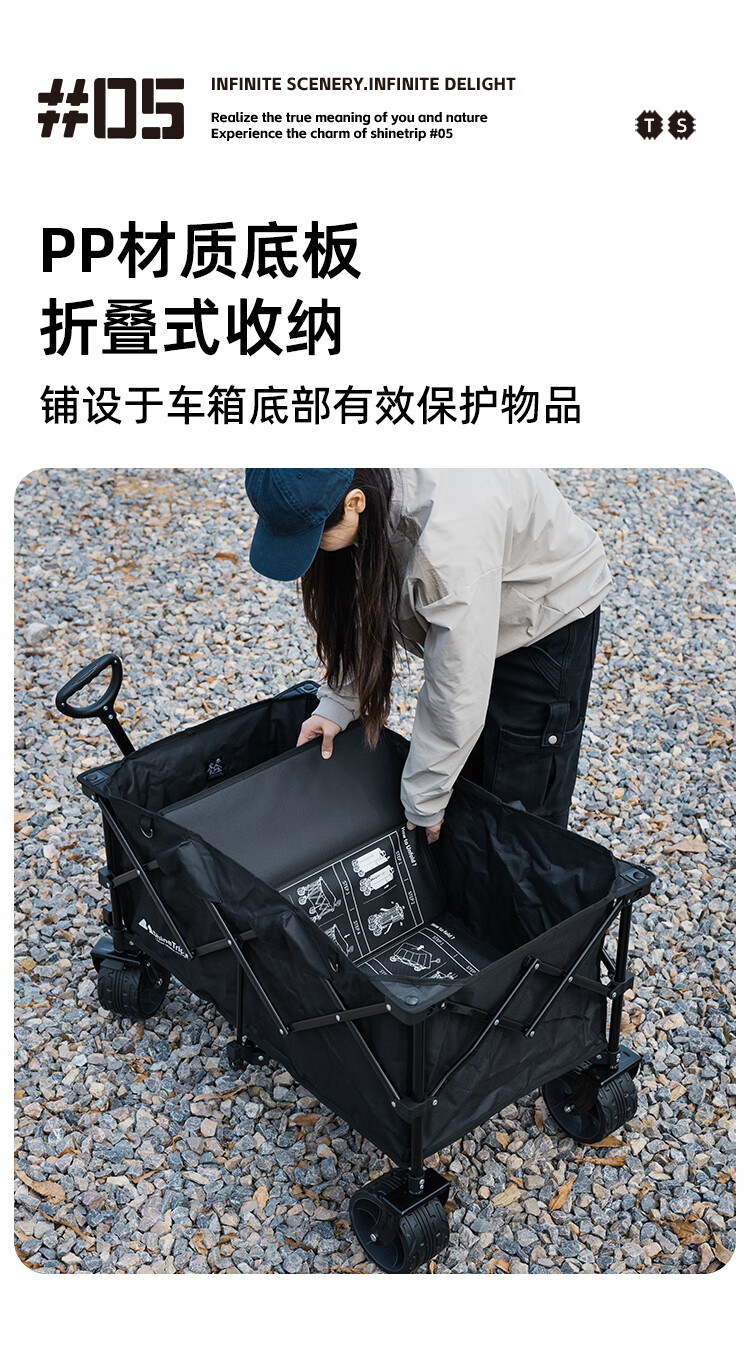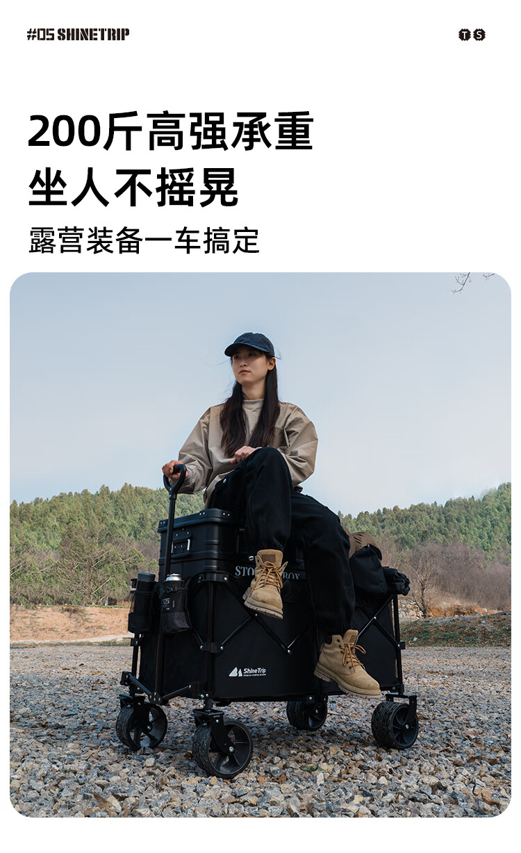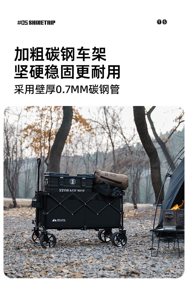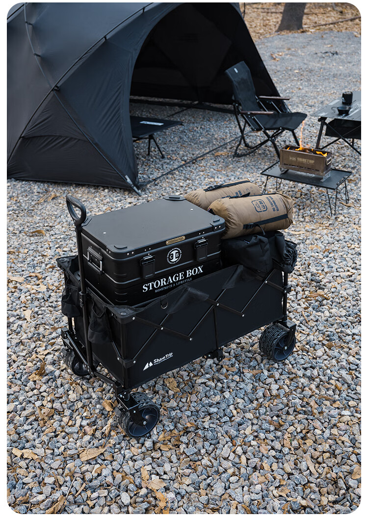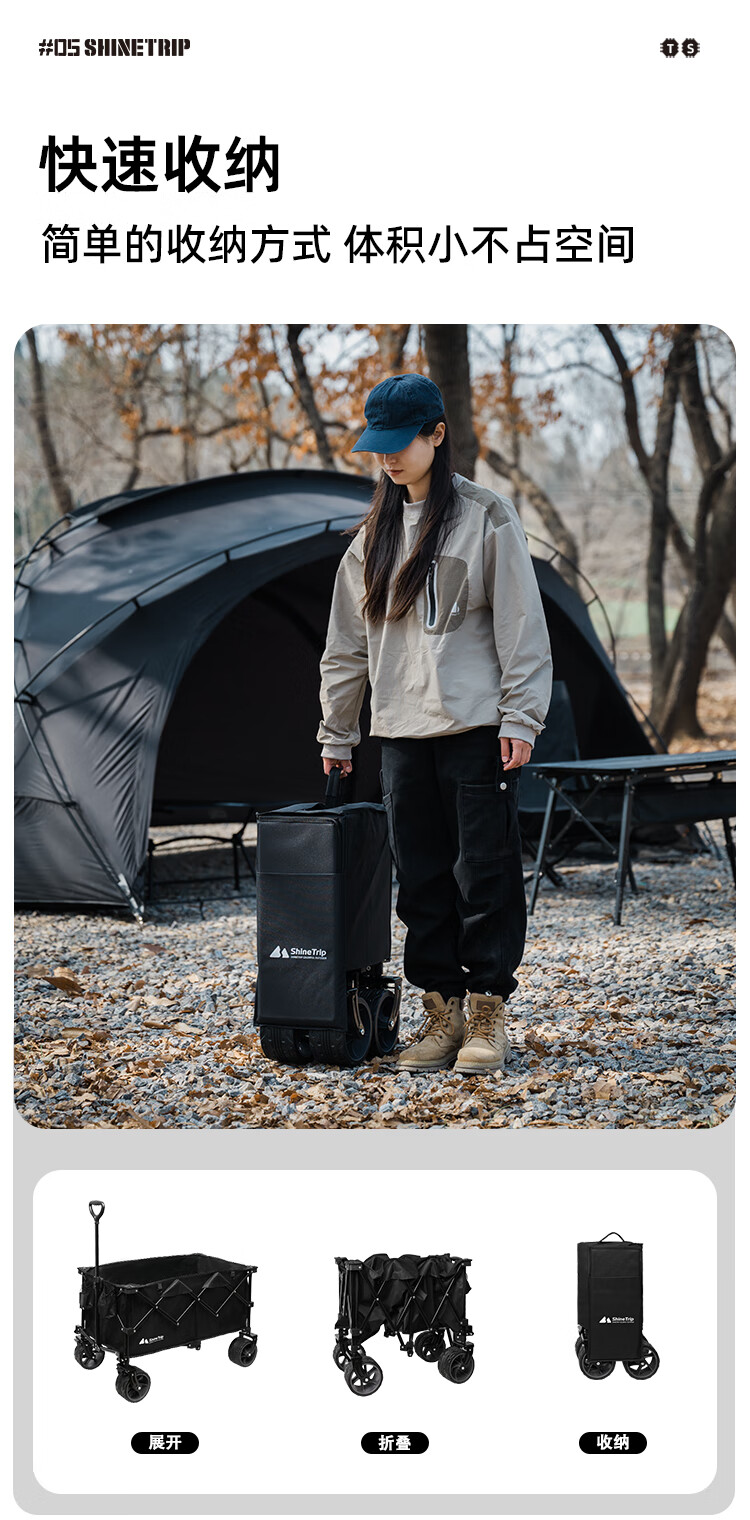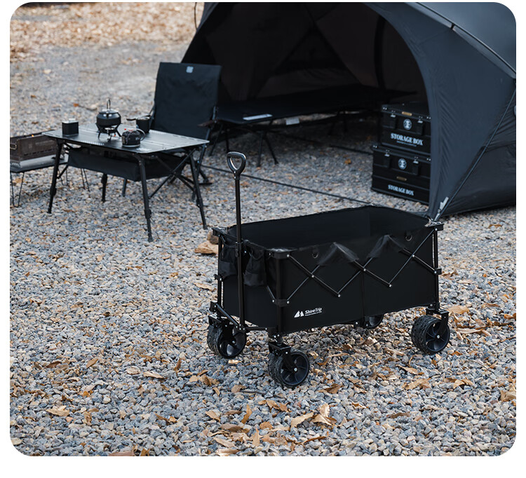 山趣(ShineTrip)户外营地车黑化露营折叠推车野餐手推拉杆车便携式越野轮推车 200L 坦途 宽轮