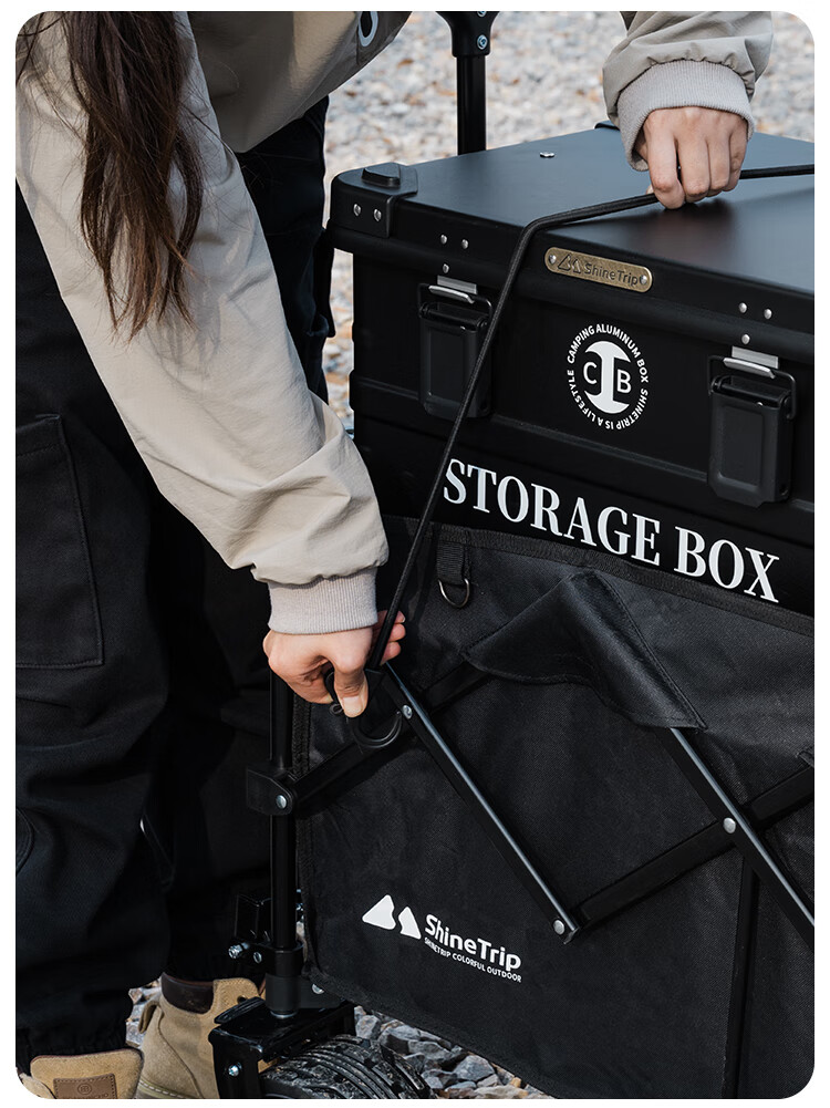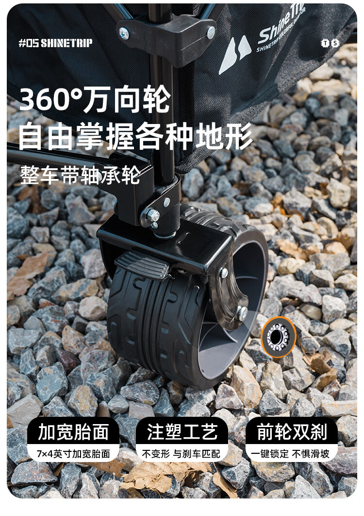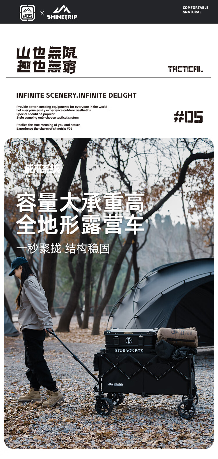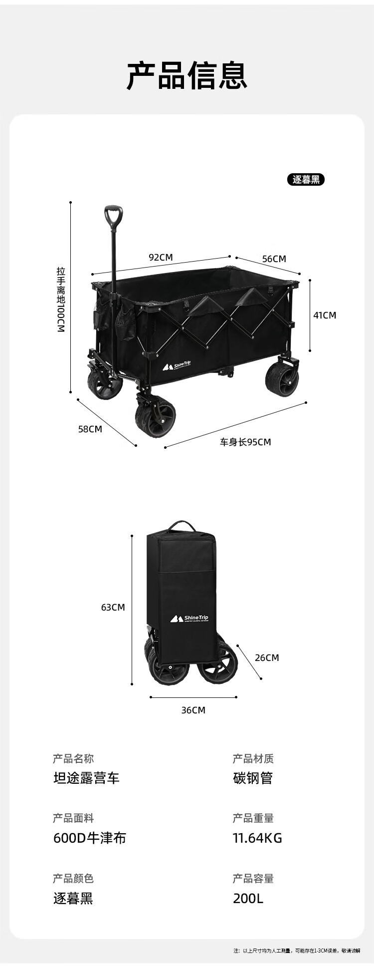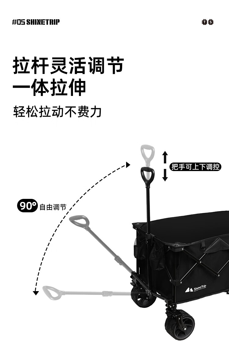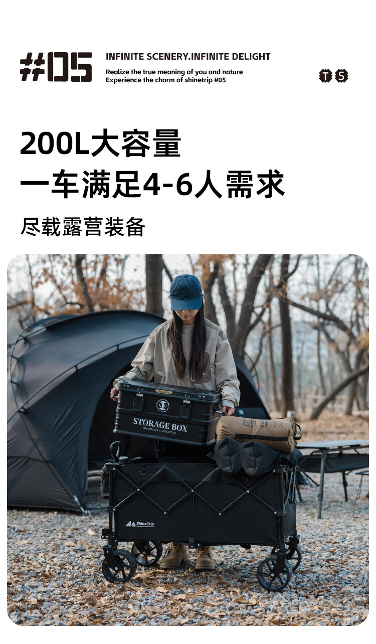 山趣(ShineTrip)户外营地车黑化露营折叠推车野餐手推拉杆车便携式越野轮推车 200L 坦途 宽轮
