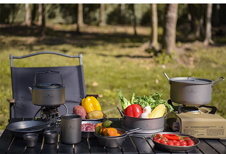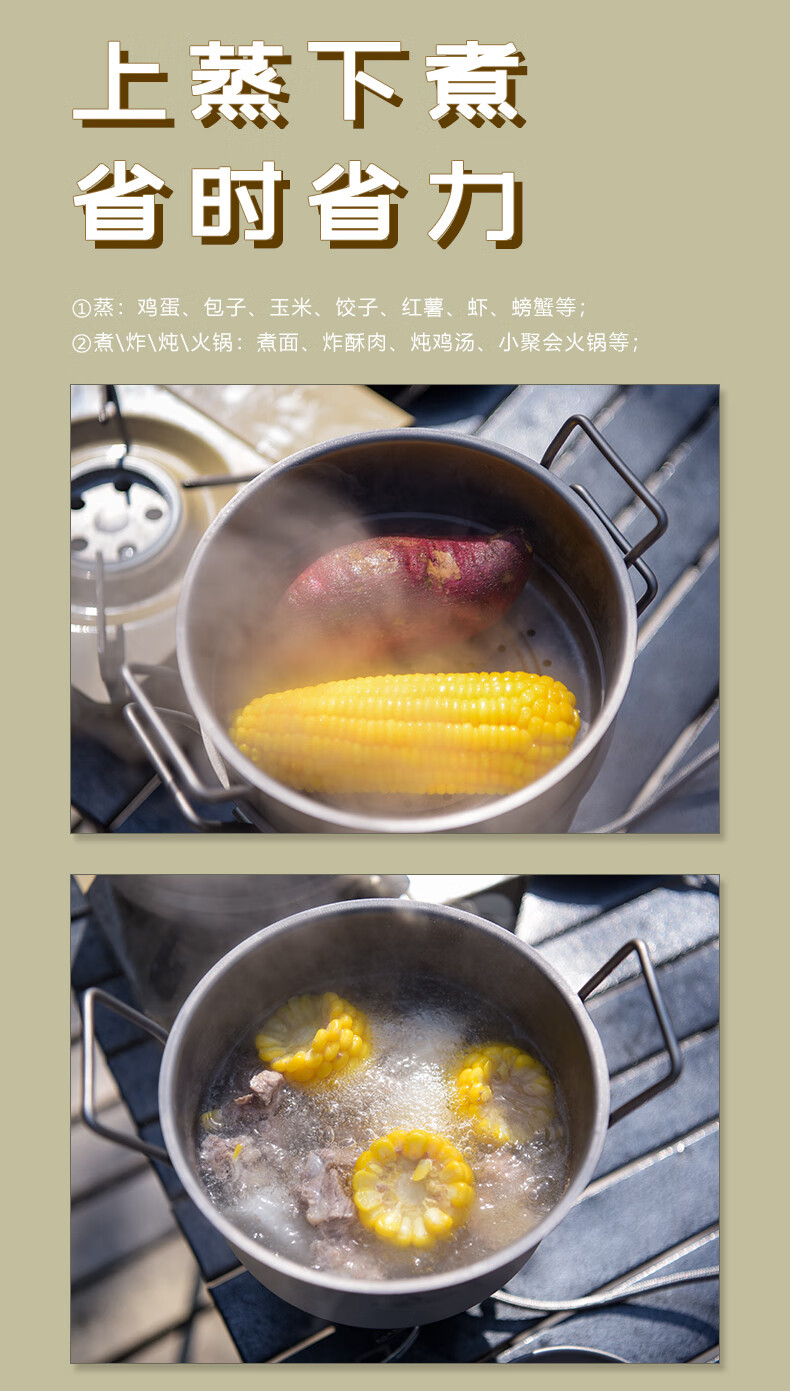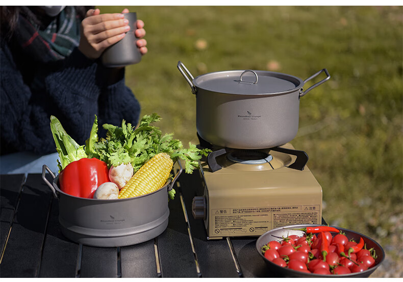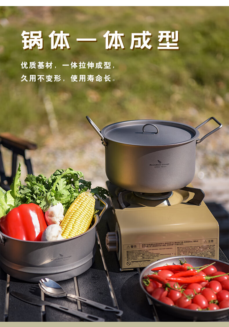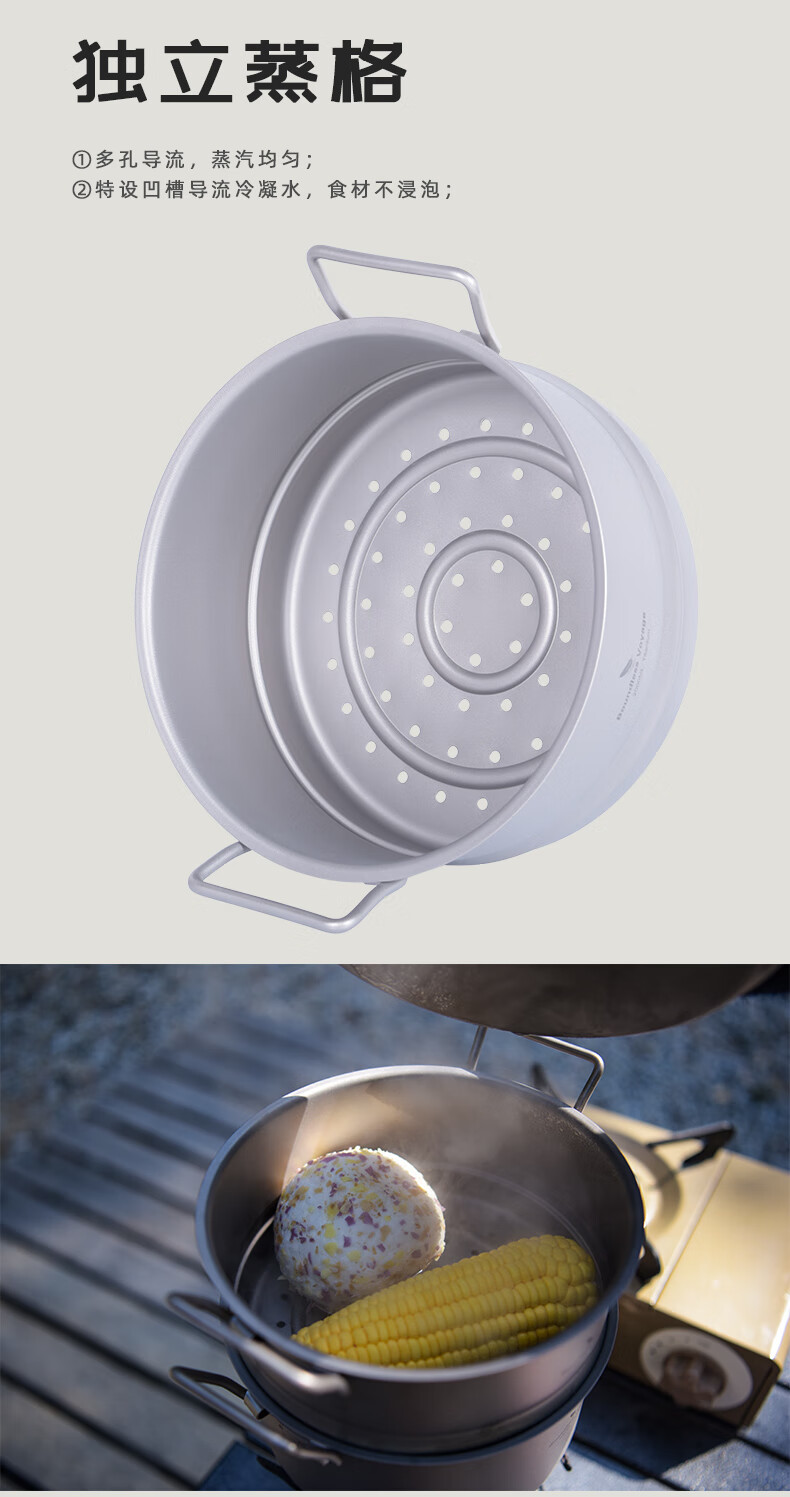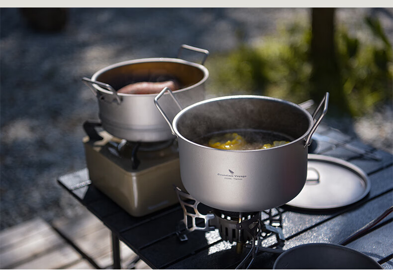 必唯(BOUNDLESS VOYAGE)必唯纯钛户外蒸锅2.2L汤锅轻量便携露营火锅野炊钛锅野营锅具炊具 Ti2111C 2.2L汤锅+2L蒸隔