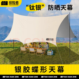 探险者(TAN XIAN ZHE)户外八角防晒天幕露营野营超大遮阳棚套装野餐银胶蝶形天幕防水 【四杆搭建】30㎡奶油咖全景视野