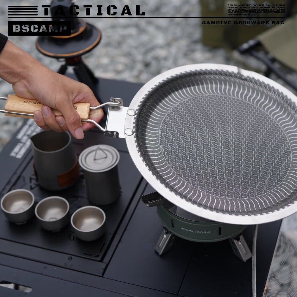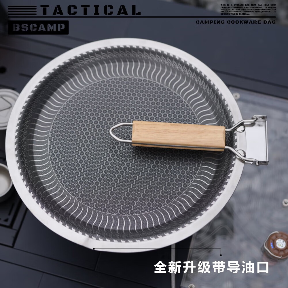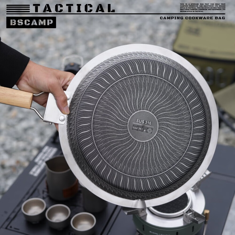 鹿险家新款316烤盘实木防烫折叠手柄不粘无涂层户外盘燃气电磁炉第三代 3CM