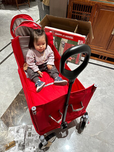 超级拉风的小推车,每次带出去都有好多宝妈宝爸问是哪里买的,这个顶上的遮阳篷夏天简直太太太太实用了,唯一不足的是只能拉不能推