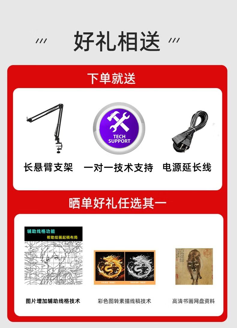临摹仪主机×1,遥控器×1,电源线×1,支架×1,桌面座夹×1