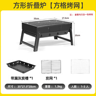 北岳烧烤炉子折叠便携式烧烤架家用户外小型木炭烤炉露营不锈钢烤肉炉 方形折叠炉方格烤网