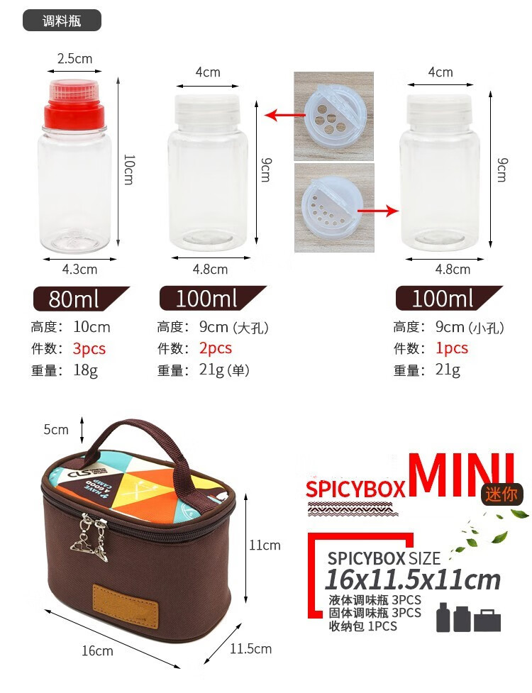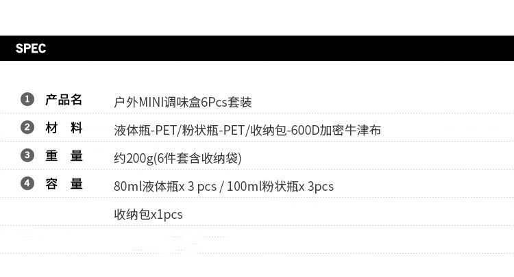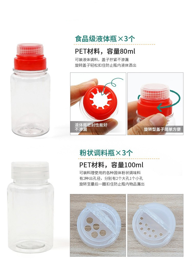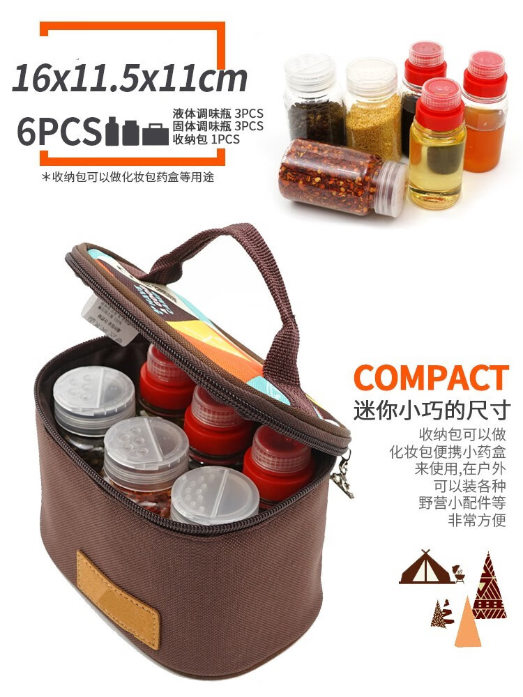 爱加芬 迷你调味瓶套装户外野营调料瓶烧烤用品旅行野餐便携收纳调料 迷你6件套组