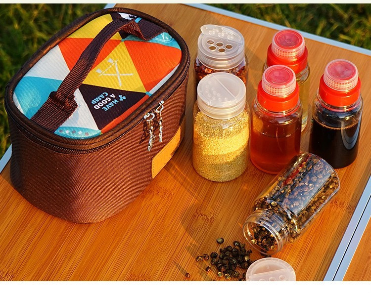 赫北营户外露营便携式调料收纳包露营野炊烧烤酱料调味料气罐收纳包冰包 【九件套】丛林绿