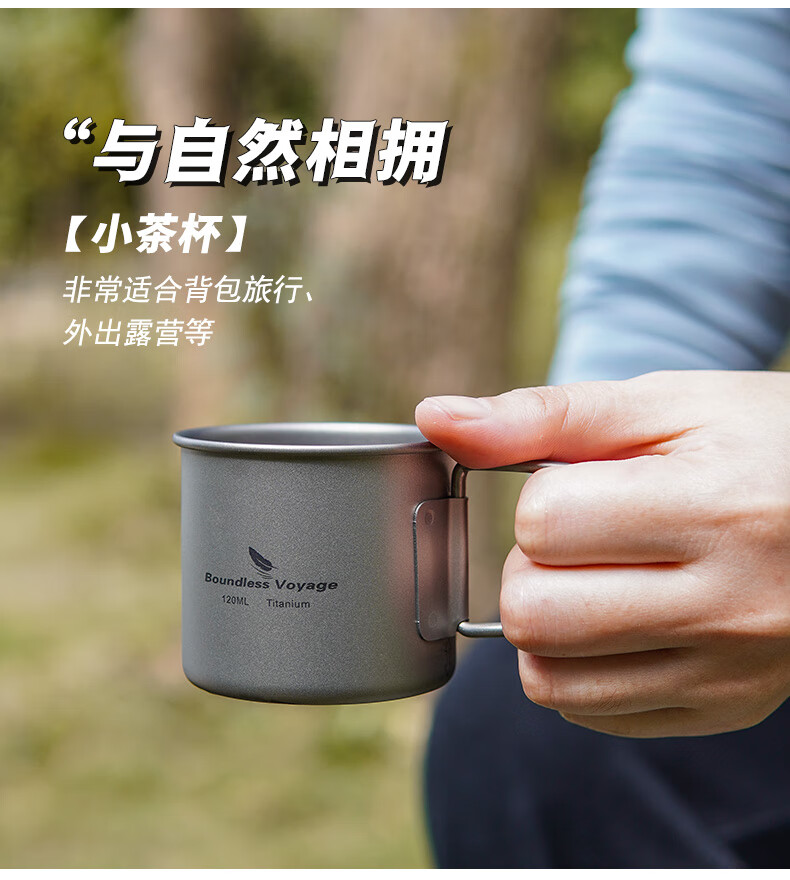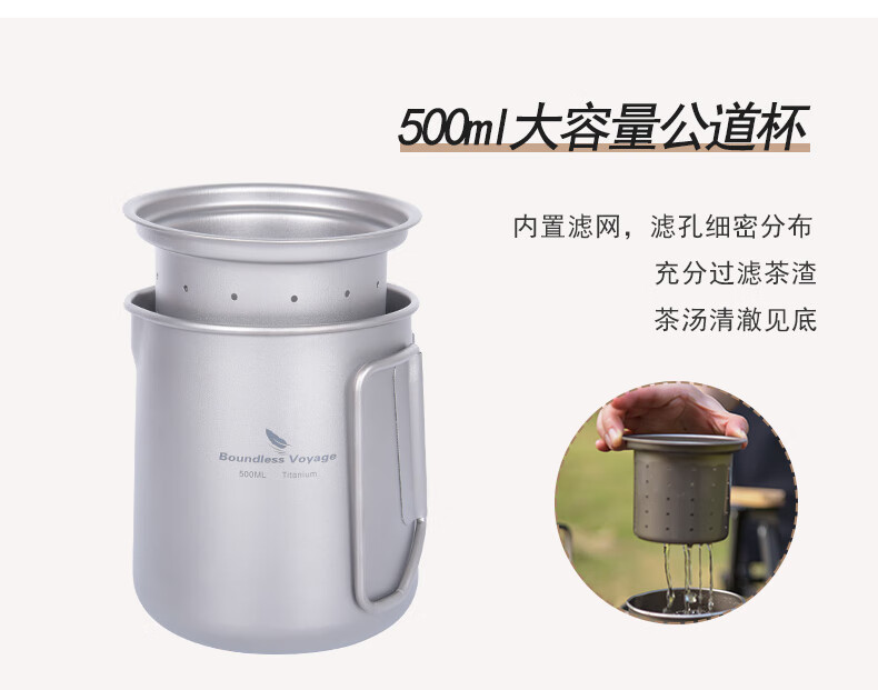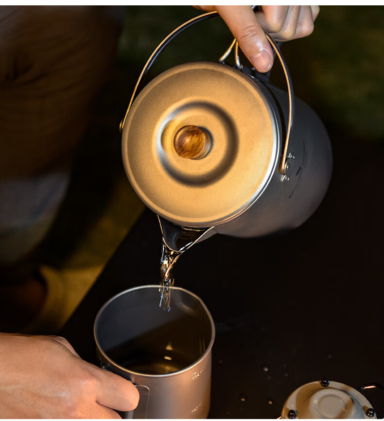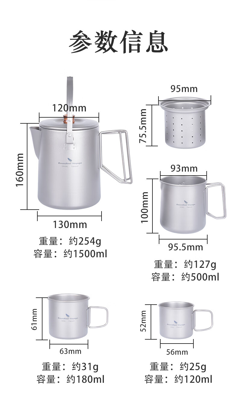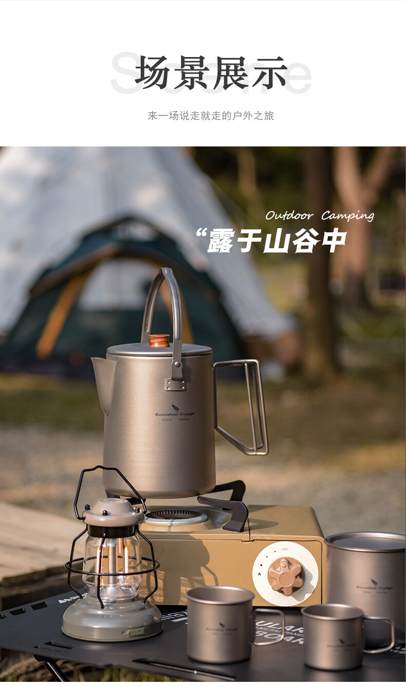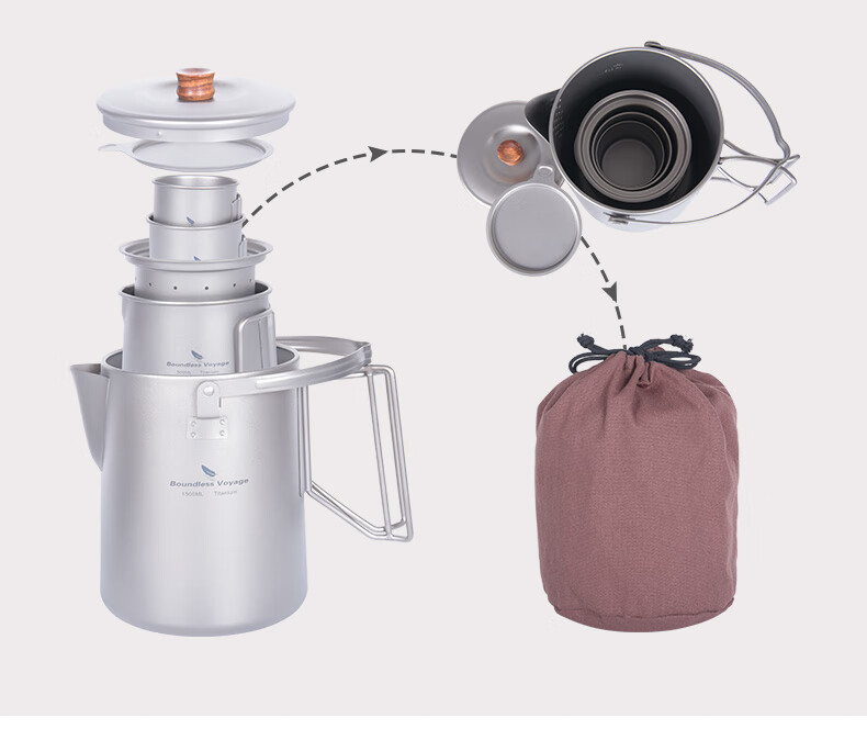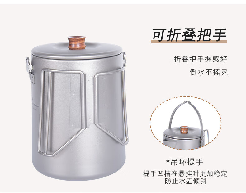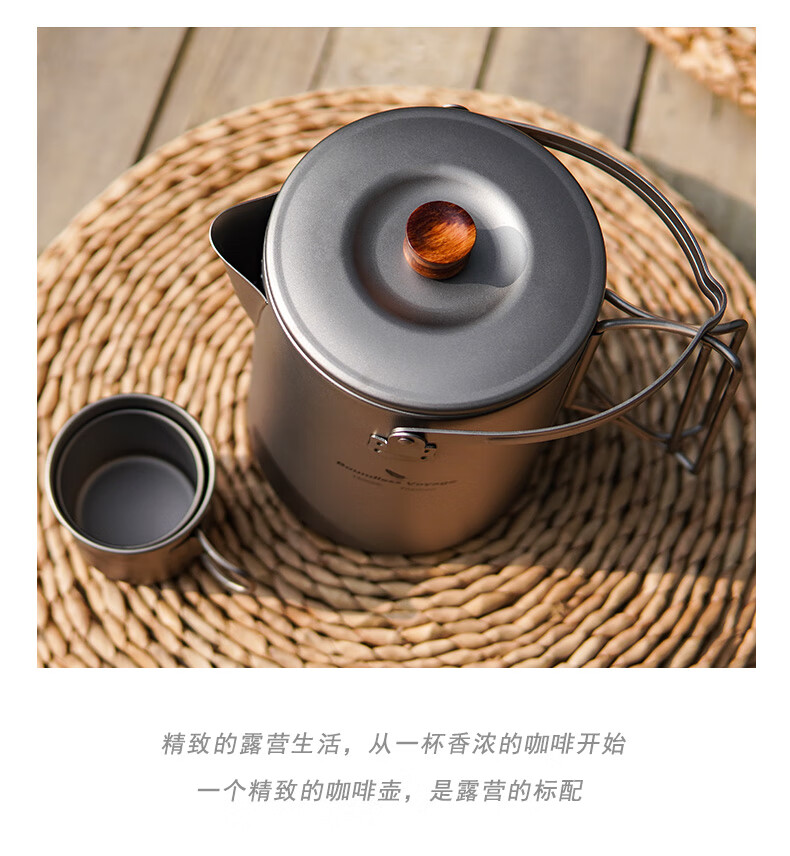 必唯(BOUNDLESS VOYAGE)纯钛户外咖啡壶1500ml折叠手柄便携露营咖啡杯野营烧水壶单层 Ti3128D 1.5L咖啡壶