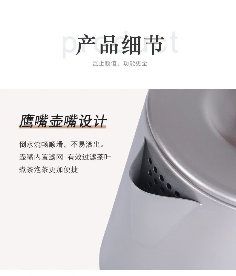 银蚁(SILVERANT)纯钛煮茶烧水壶泡茶拉花咖啡家用开水壶茶具户外露营便捷明火加热 900ML纯钛烧水壶【无滤网】
