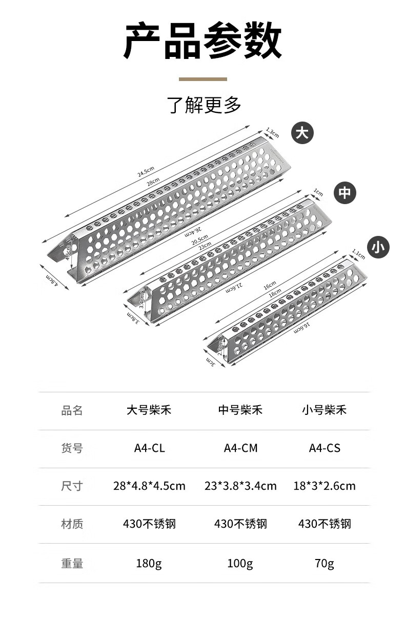 CAMPINGMOON柯曼焚火台通用柴禾露营焚火辅助神器不锈钢篝火助燃加速器 【A4-CL】大号柴禾助燃器1根