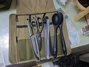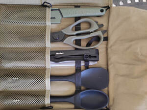 很有质感的一套露营餐具,做工精致,用料扎实,没有丝毫的廉价感。悬挂设计也很实用,配合IGT桌还有挂件,能把刀具始终放在顺手的位置。