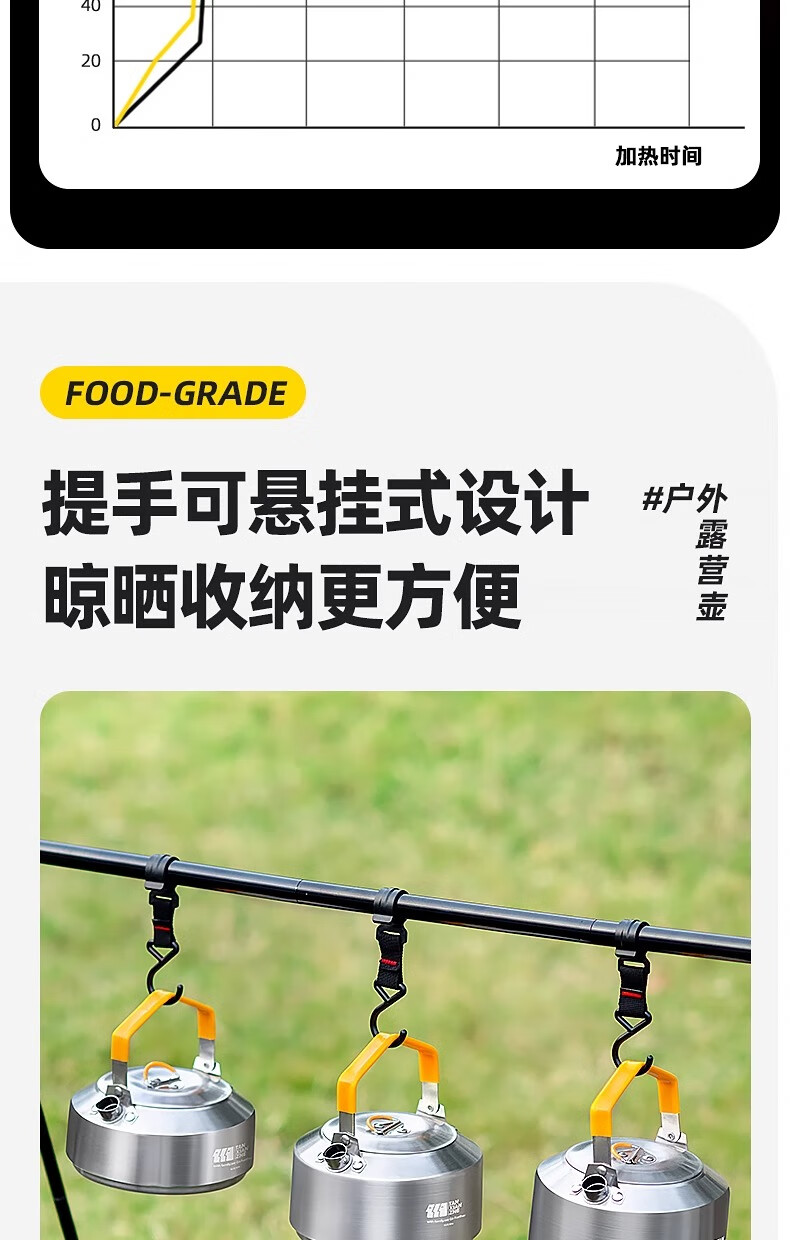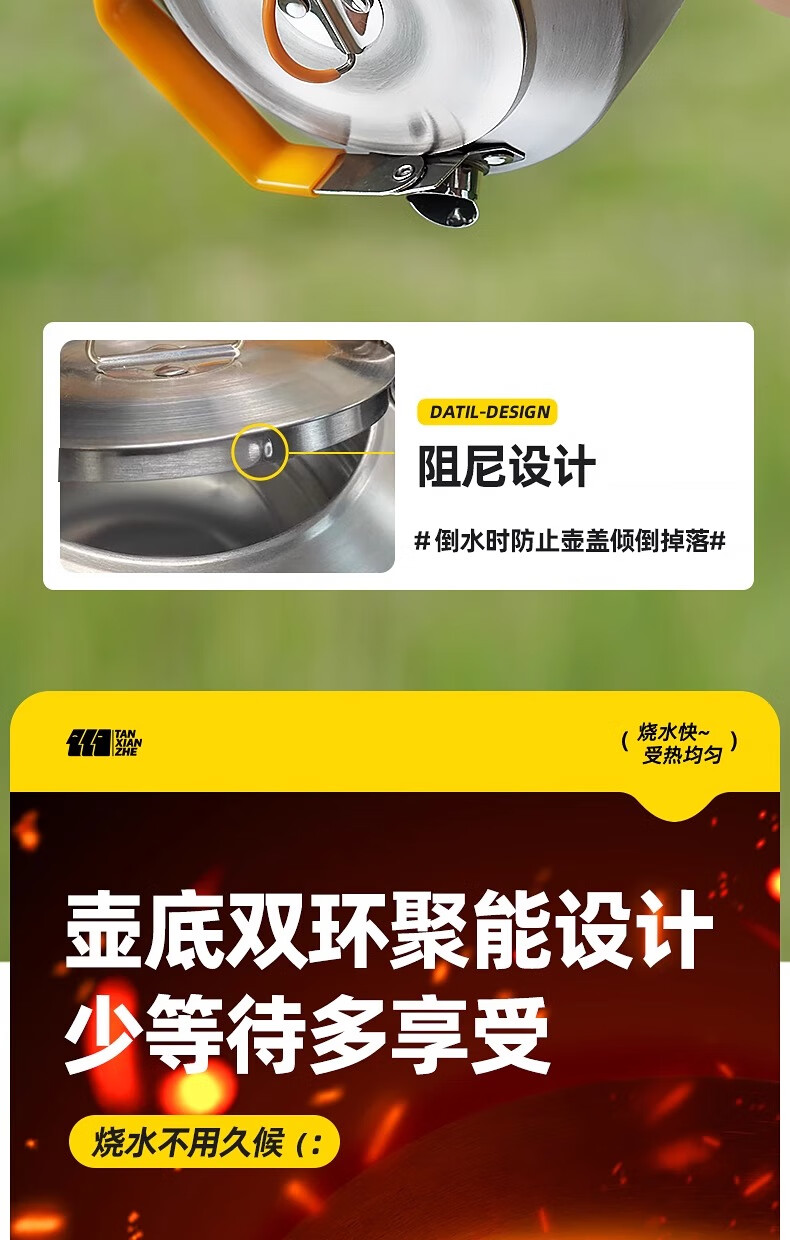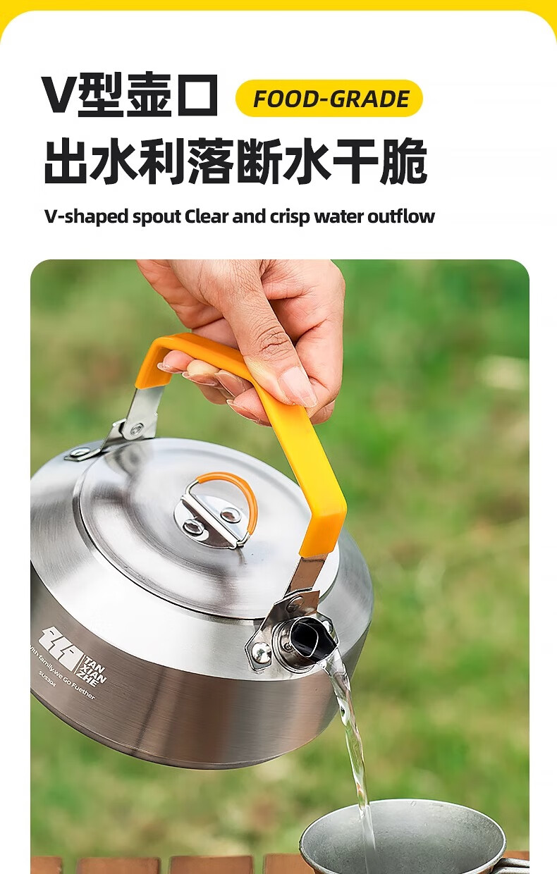 这款户外烧水壶外观漂亮精致,304不锈钢材质的,整体轻巧不重,容量还算挺大,我是直接放卡式炉上烧的,很方便