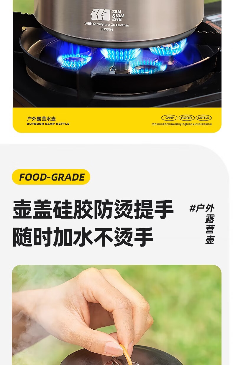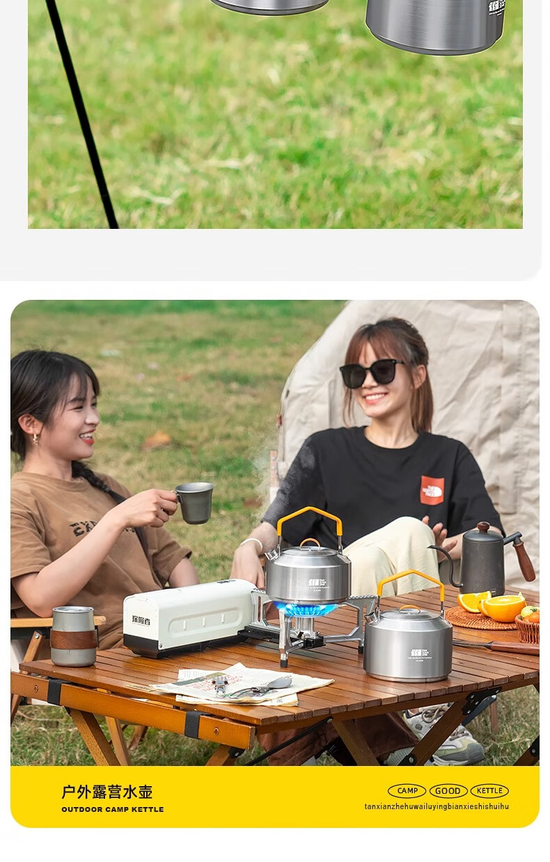 探险者(TAN XIAN ZHE)户外烧水壶合集露营烧水壶便携式卡式炉明火烧水壶野餐水具大全 【304不锈钢】1.2L水壶·奶白