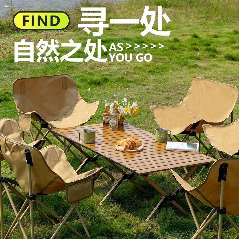 北乐户外露营蛋卷桌折叠桌椅套装便携式摆摊野营野炊野餐桌子装备全套 150CM蛋卷桌木纹+月亮椅*4