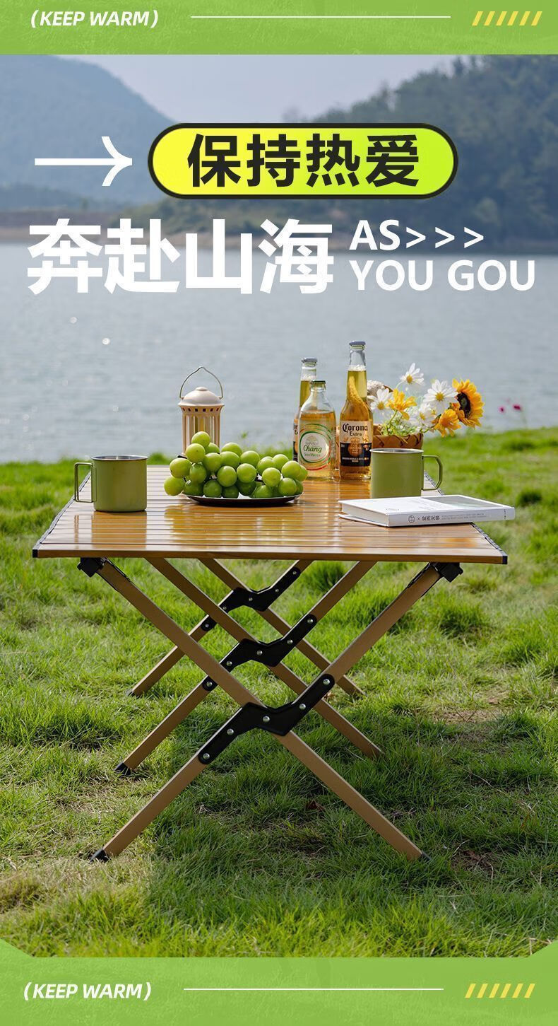 天丂 蛋卷桌户外露营折叠桌子便携式烧烤桌野营折叠蛋卷餐桌加长桌子 黄色大号长桌【120*55*50cm】