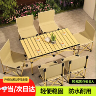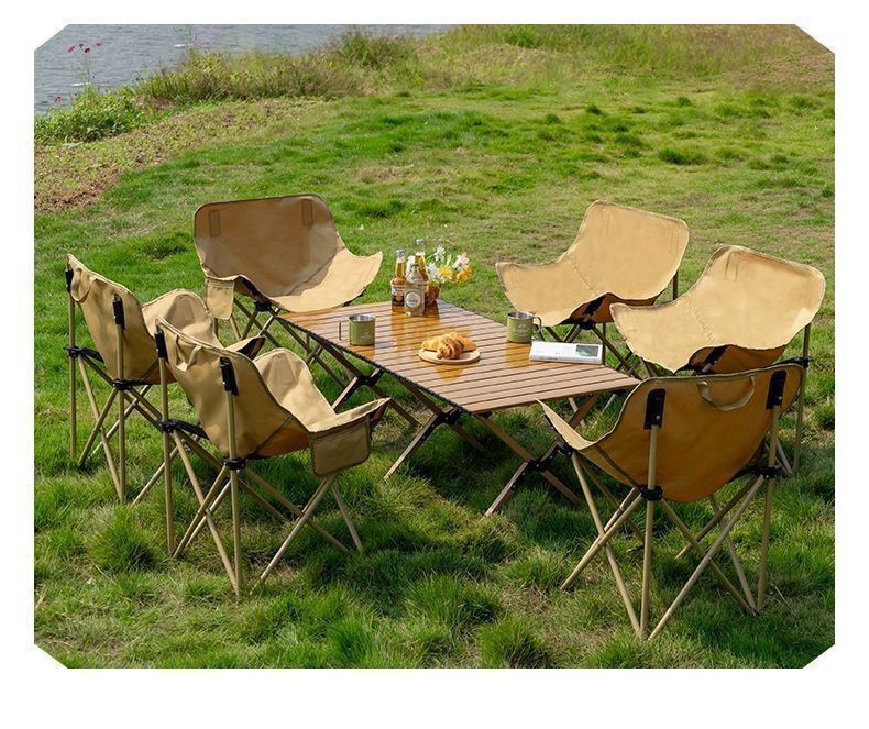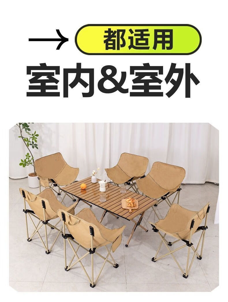 澜虞户外桌椅折叠便携式全套桌椅露营野餐蛋卷桌椅组合野营桌子折叠椅 60cm单桌+2个月亮椅 【浅木纹色】铁合金材质