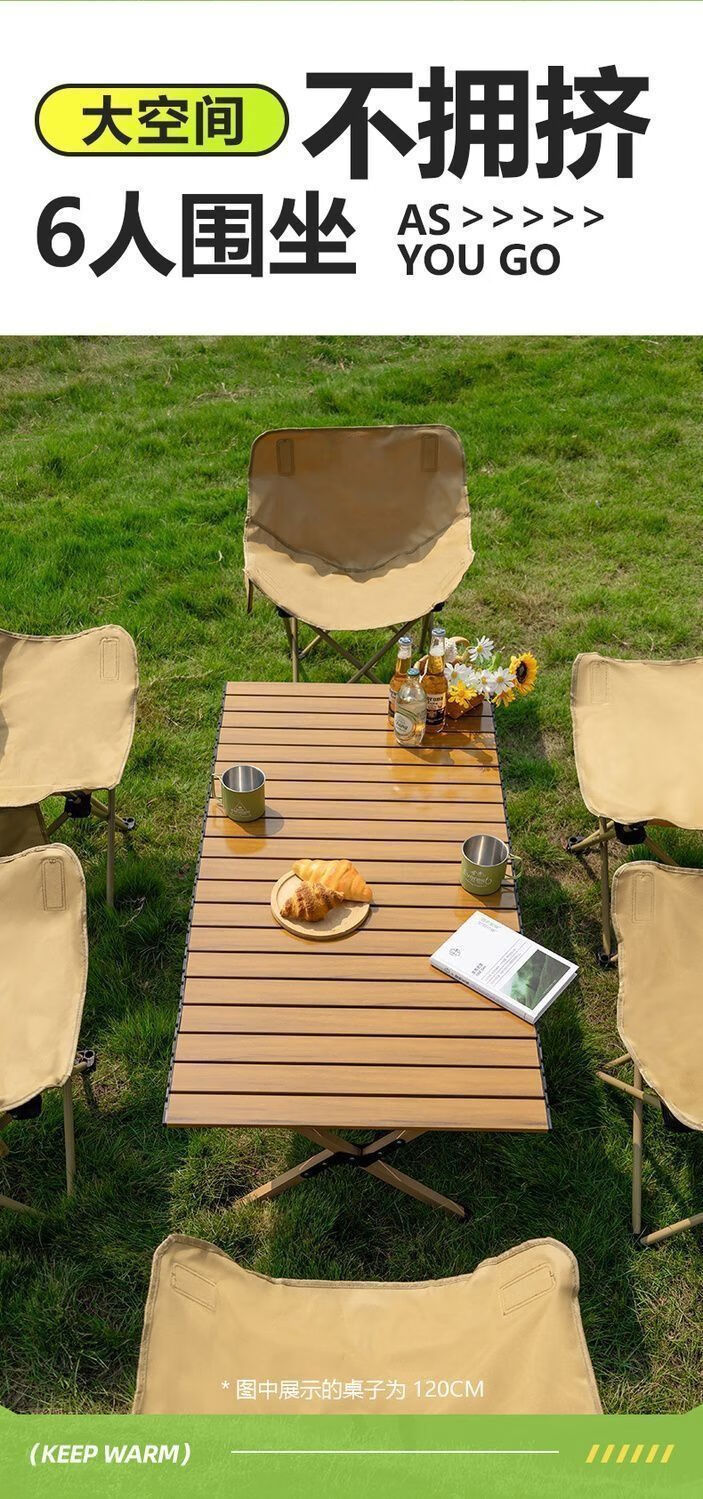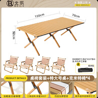 北乐户外便携式露营蛋卷桌可折叠桌椅子野餐摆摊桌椅野营野炊装备套装 木纹超大号【150cm】+克米特椅*4