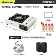 北山狼 户外炉具卡式炉套装露营瓦斯炉居家两用便携式卡斯炉全套带锅 白色+0.8L水壶+收纳箱【赠气罐*4】】