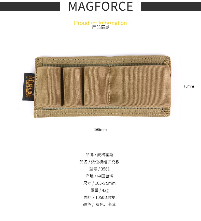 MAGFORCE麦格霍斯中国台湾台马molle模组扩充板3561户外背包配件 灰色